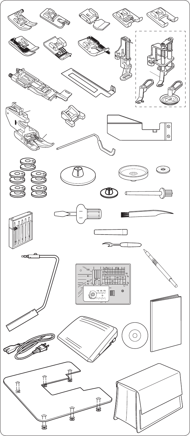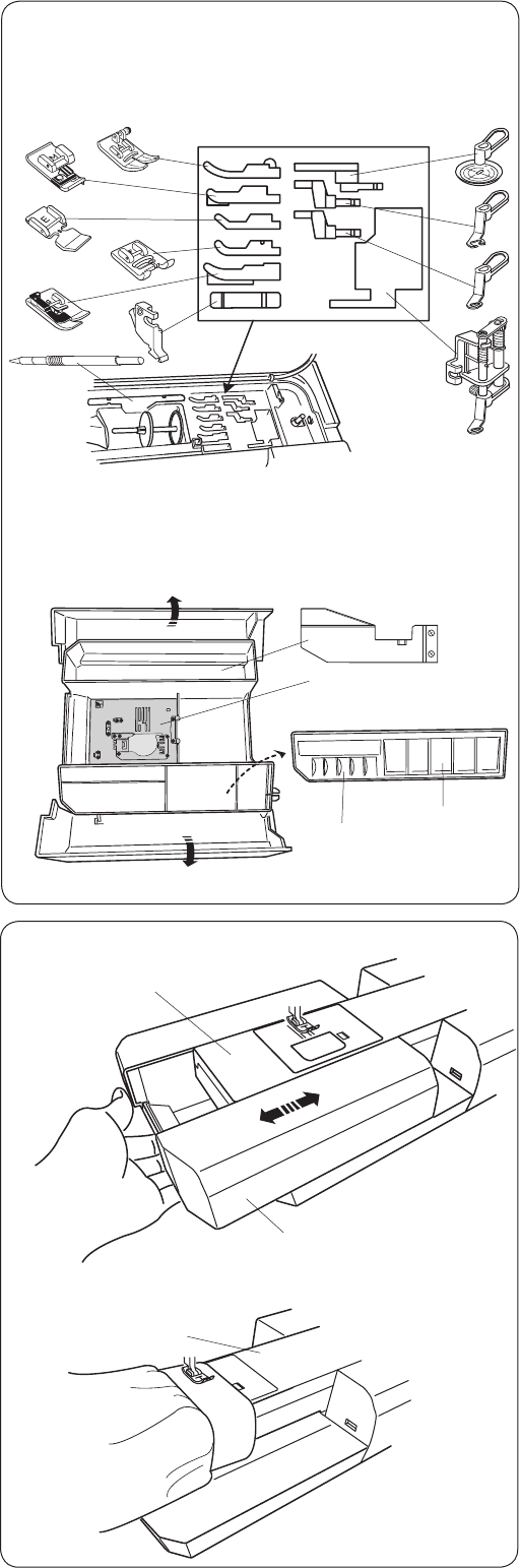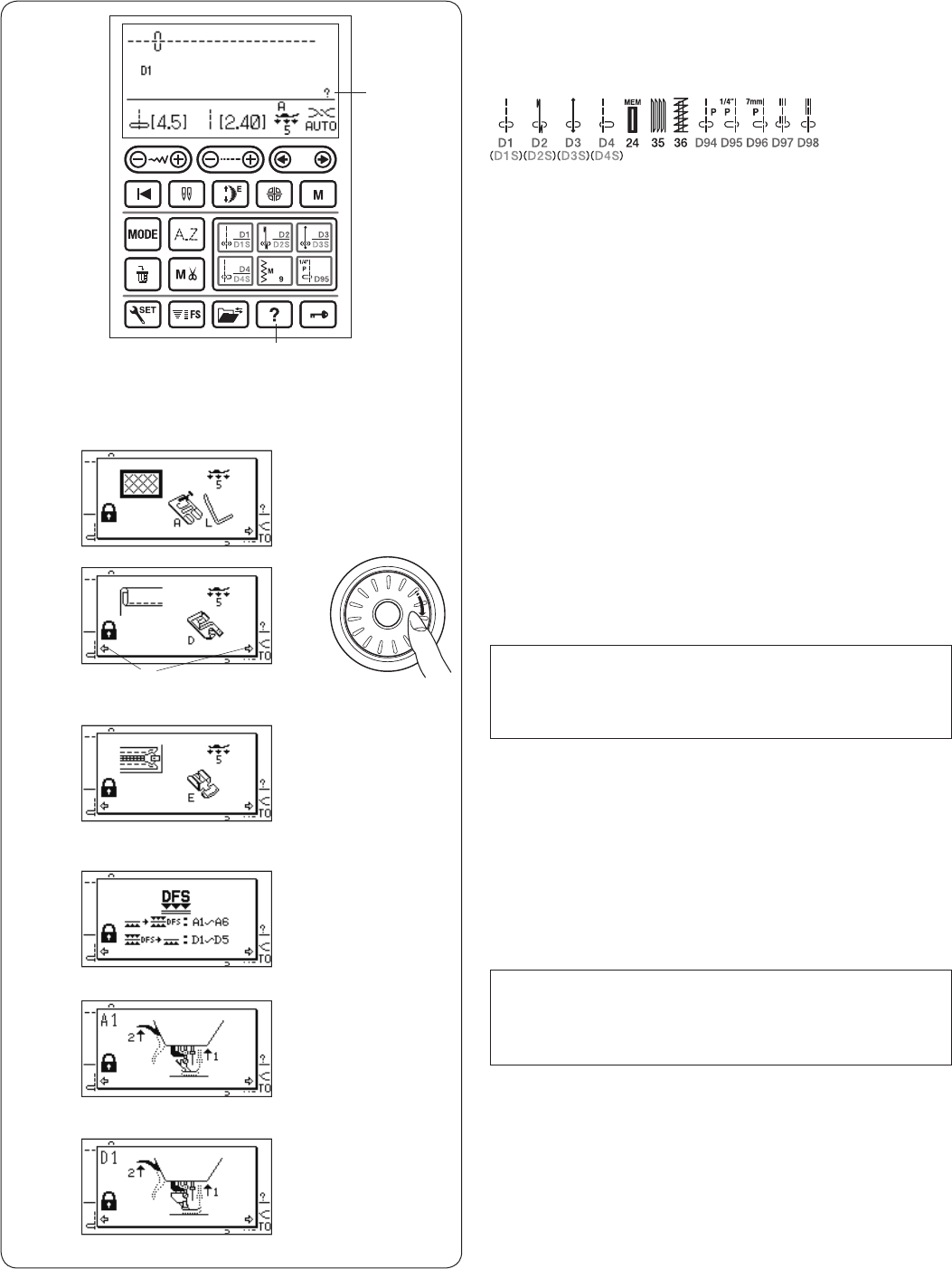 needle, changing the needle, threading the bobbin or changing the presser foot, and the like.