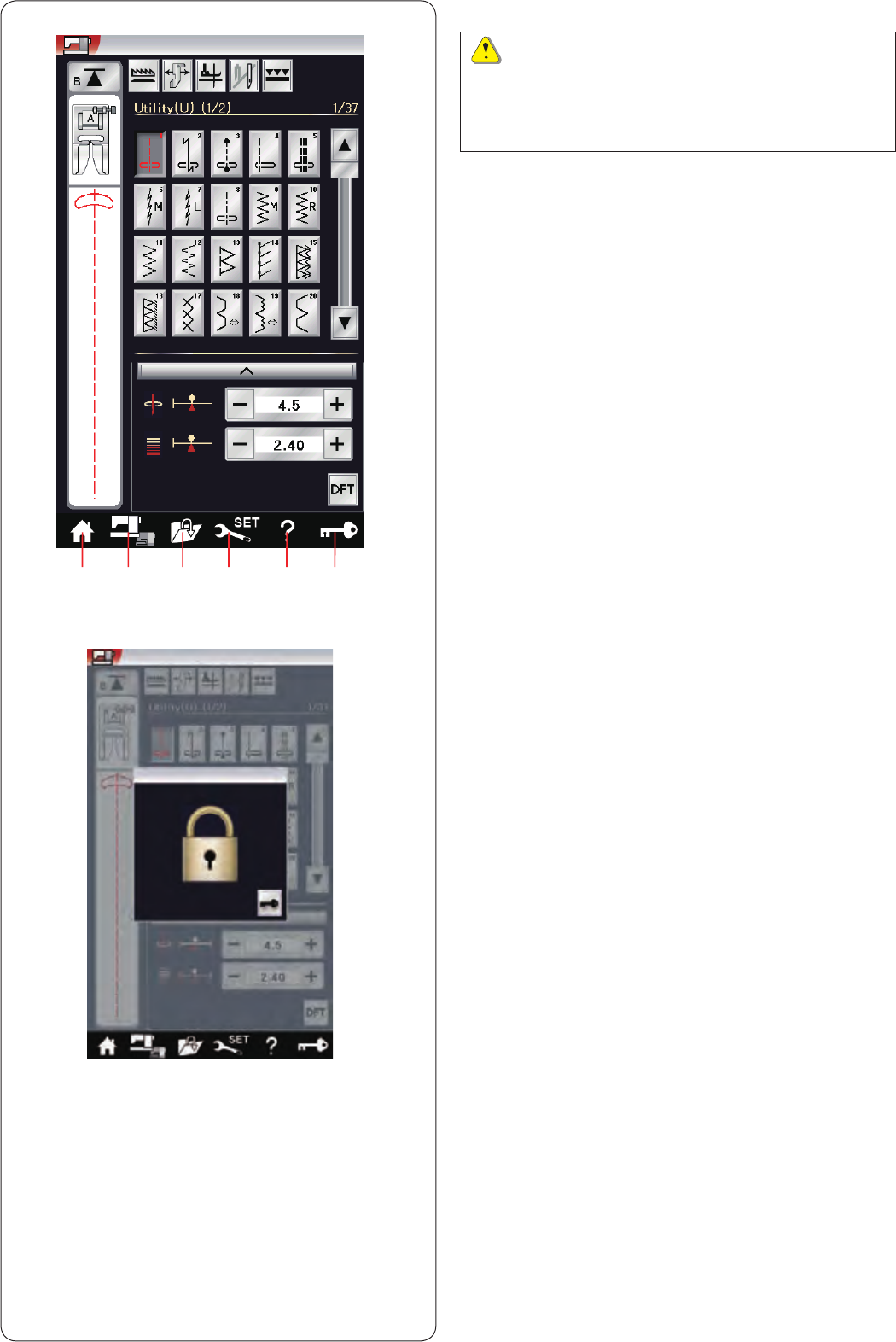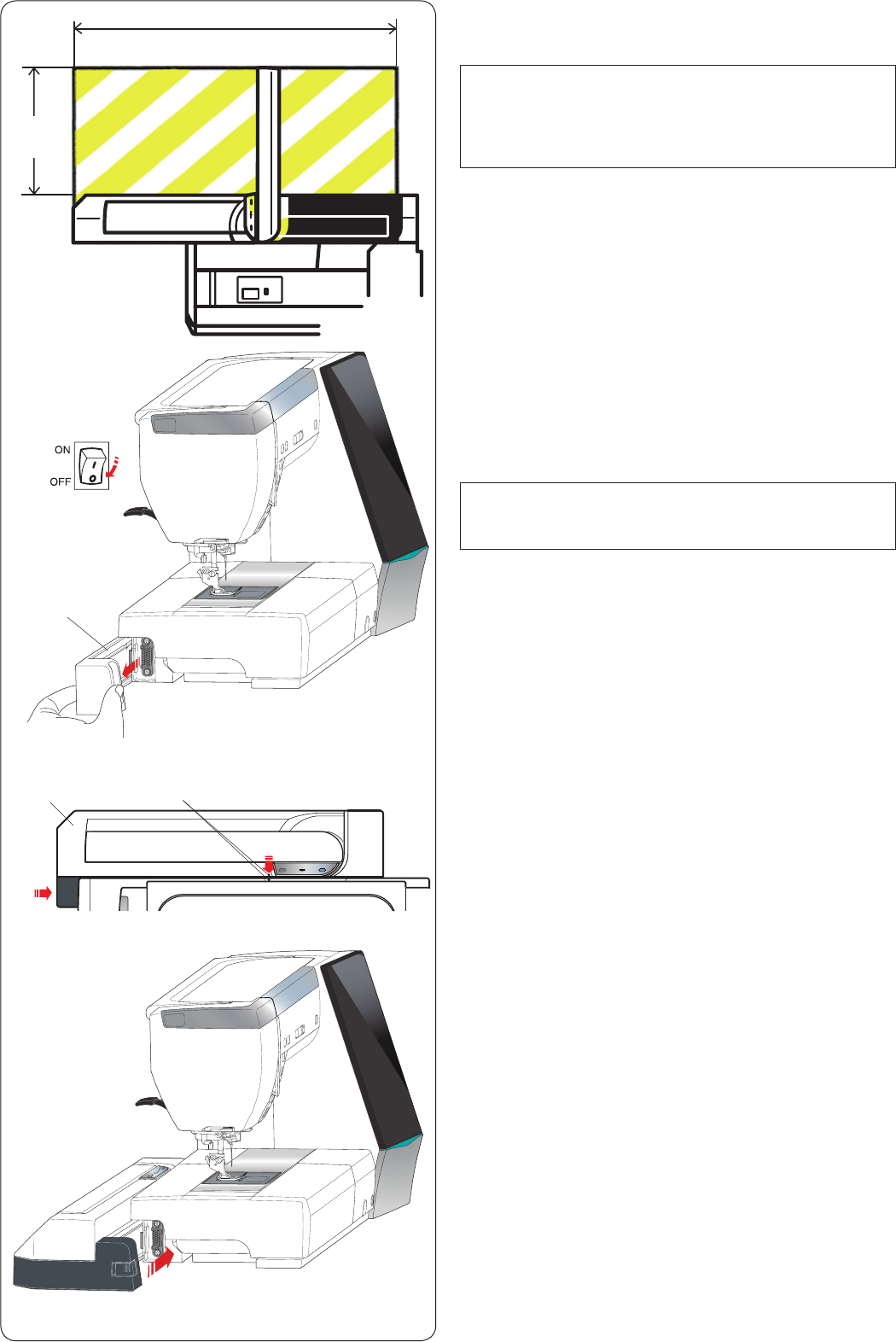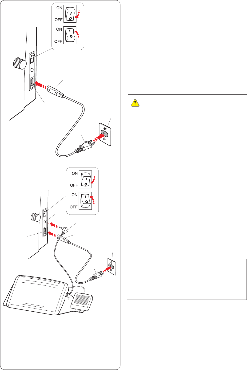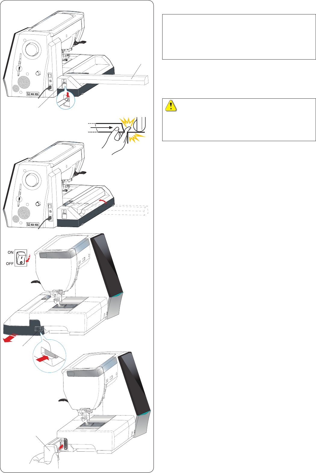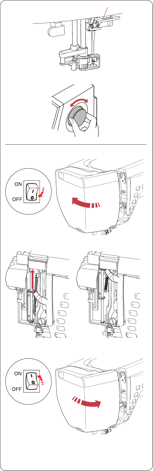 14. Switch this sewing machine off (“O”) when making any adjustment in the needle area, such as