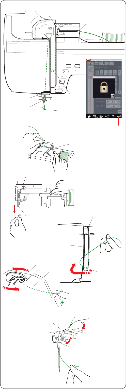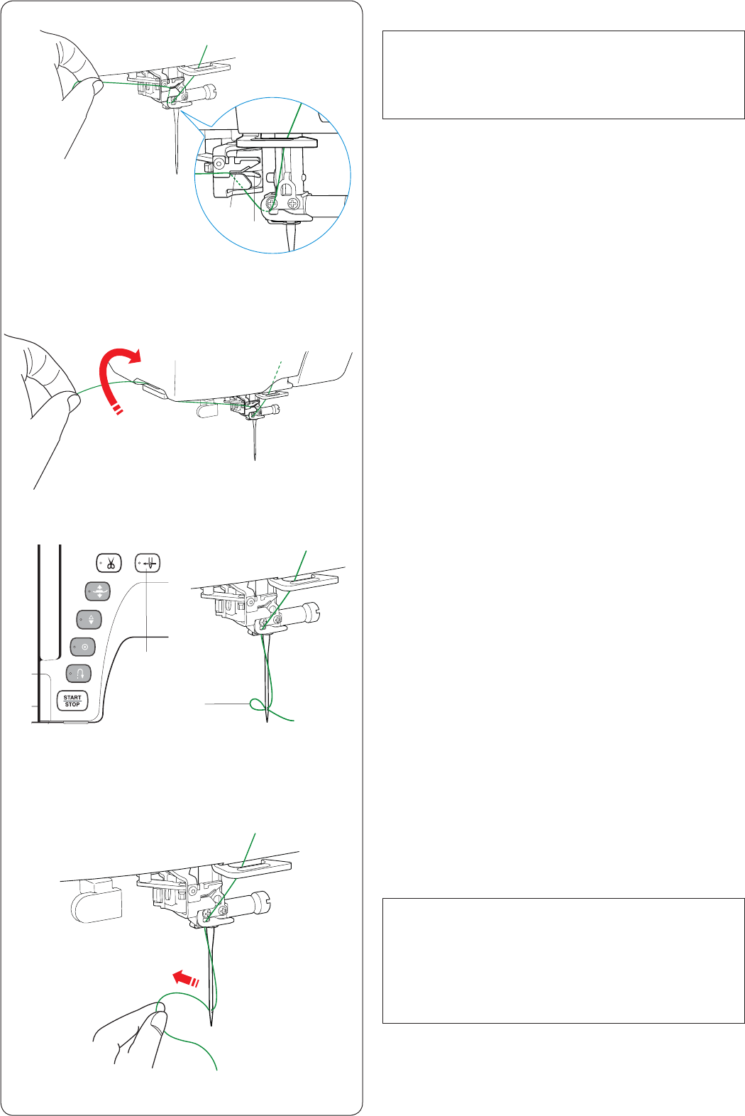 threading the needle, changing the needle, threading the bobbin or changing the presser foot, and