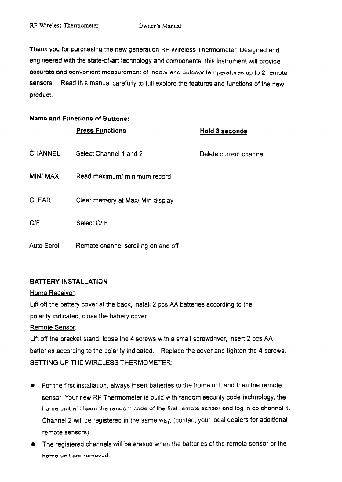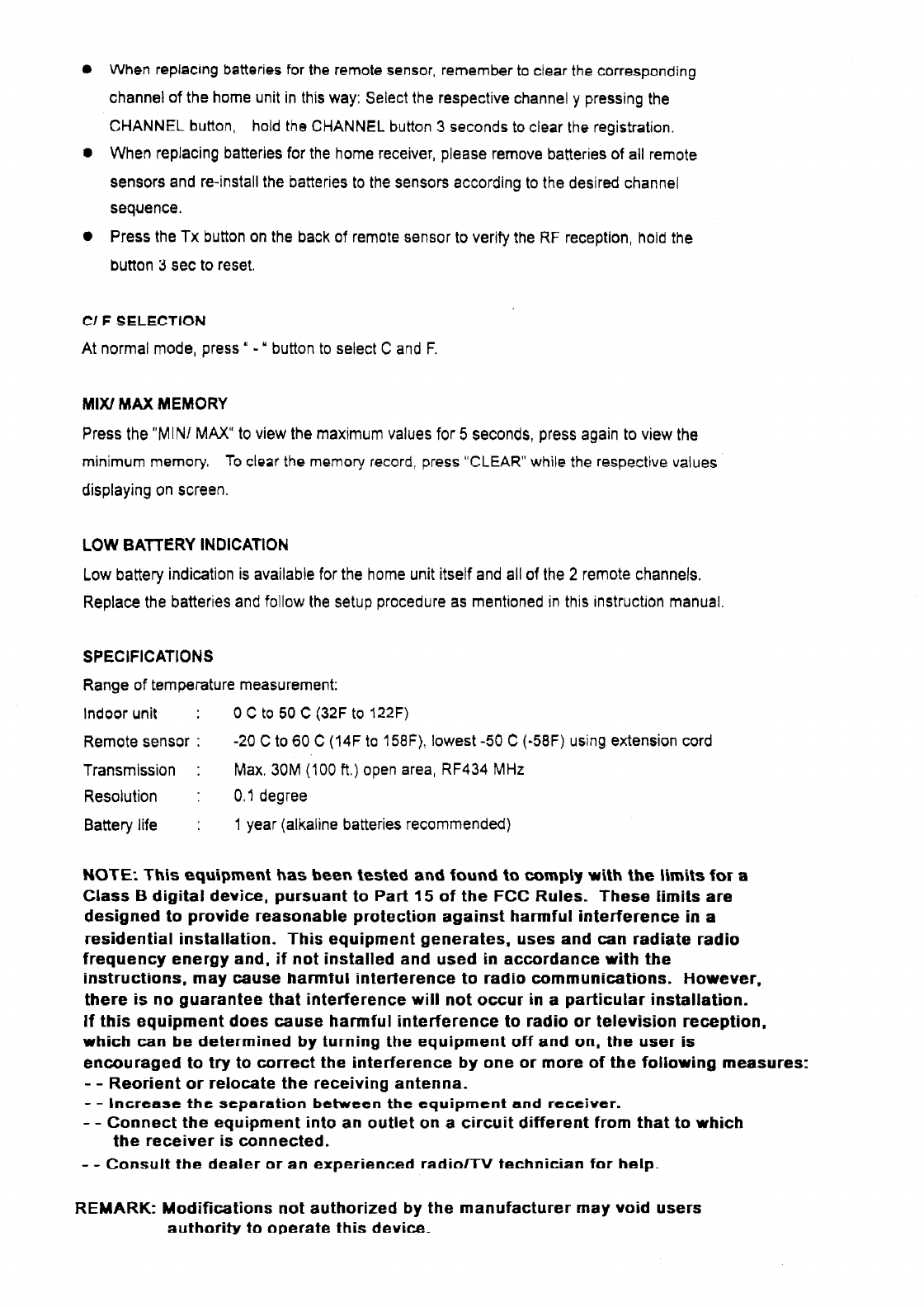 Jasco 0762TX Wireless Thermometer User Manual 3