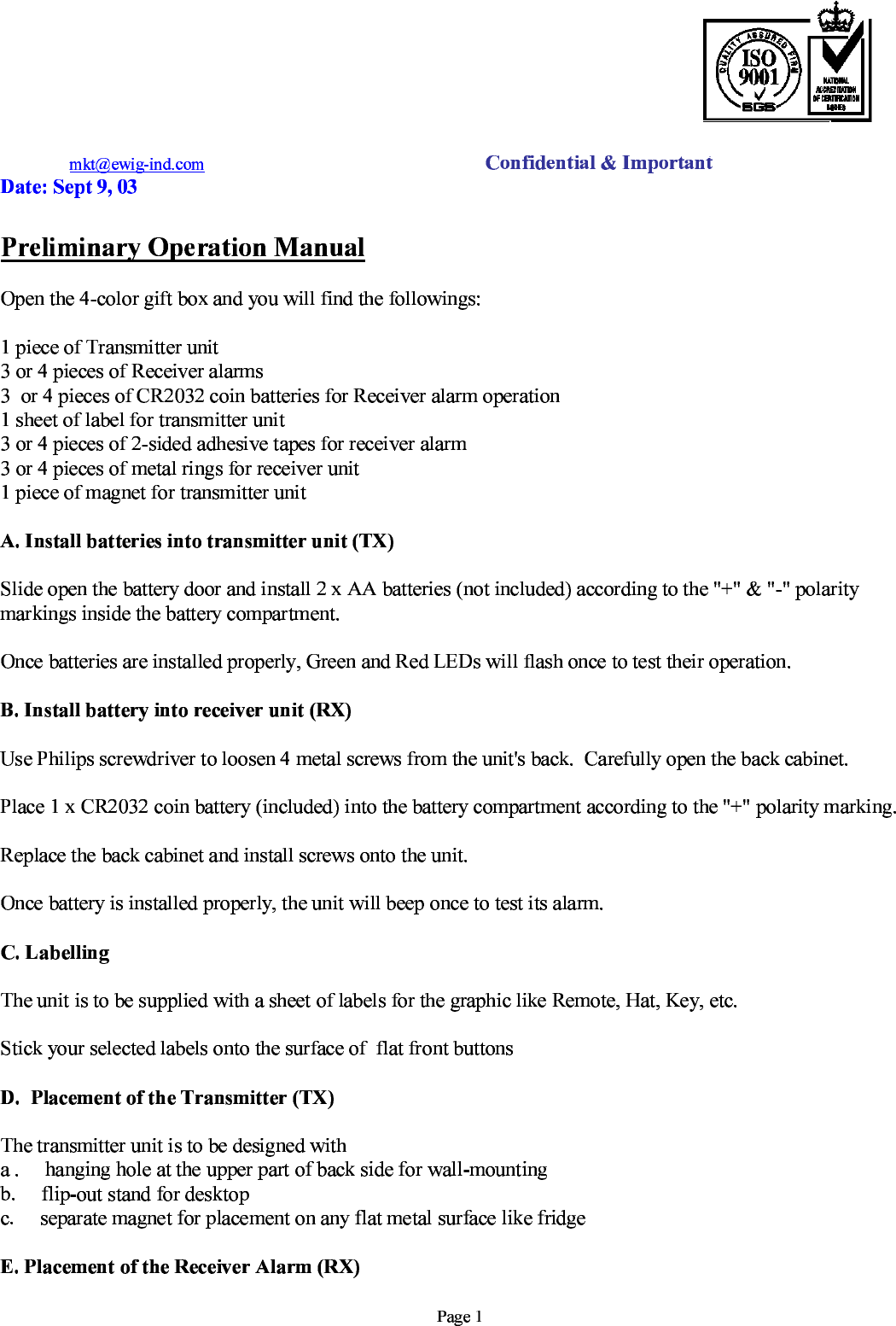 Tlx : 47945 EWIG HX Cable : EWIGINTL