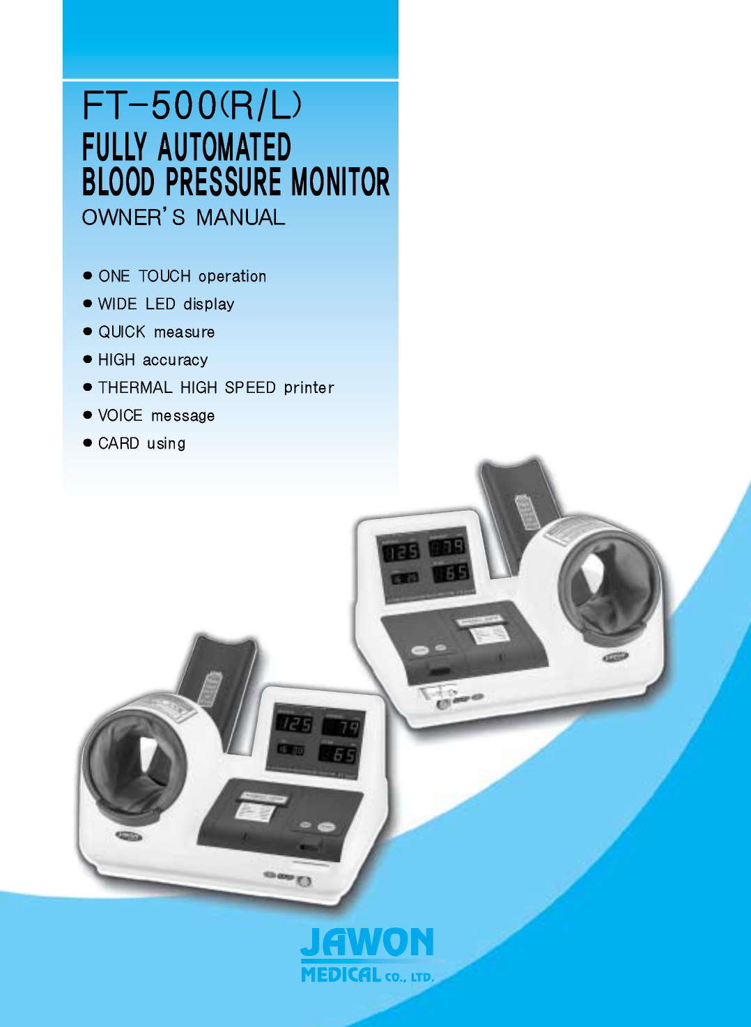 Jawon Medical FT-500 Fully Automated Blood Pressure Monitor User Manual