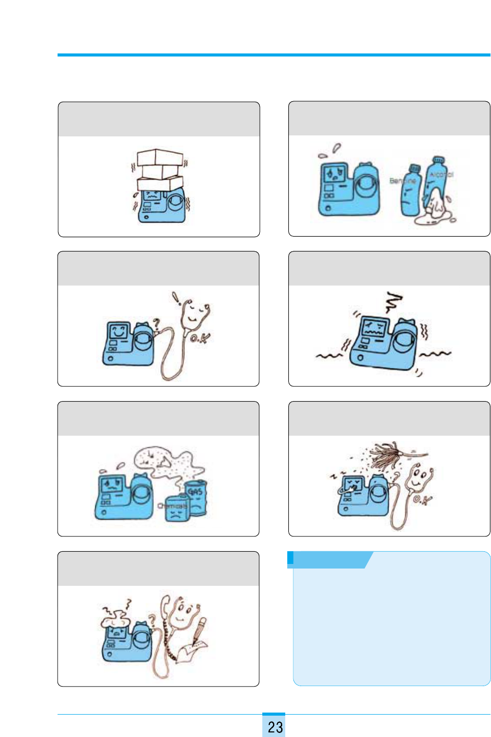 7) Avoid the following environments for storage ;
