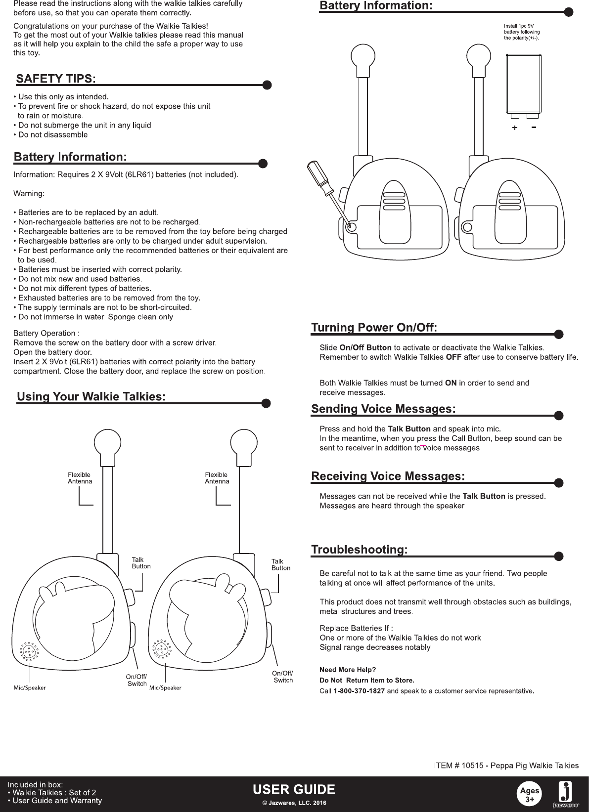 Jazwares JAZWARES10515 10515-PEPPA PIG - WALKIE TALKIES User Manual BB 10515 WT PeppaPig WT Manual V2 OT