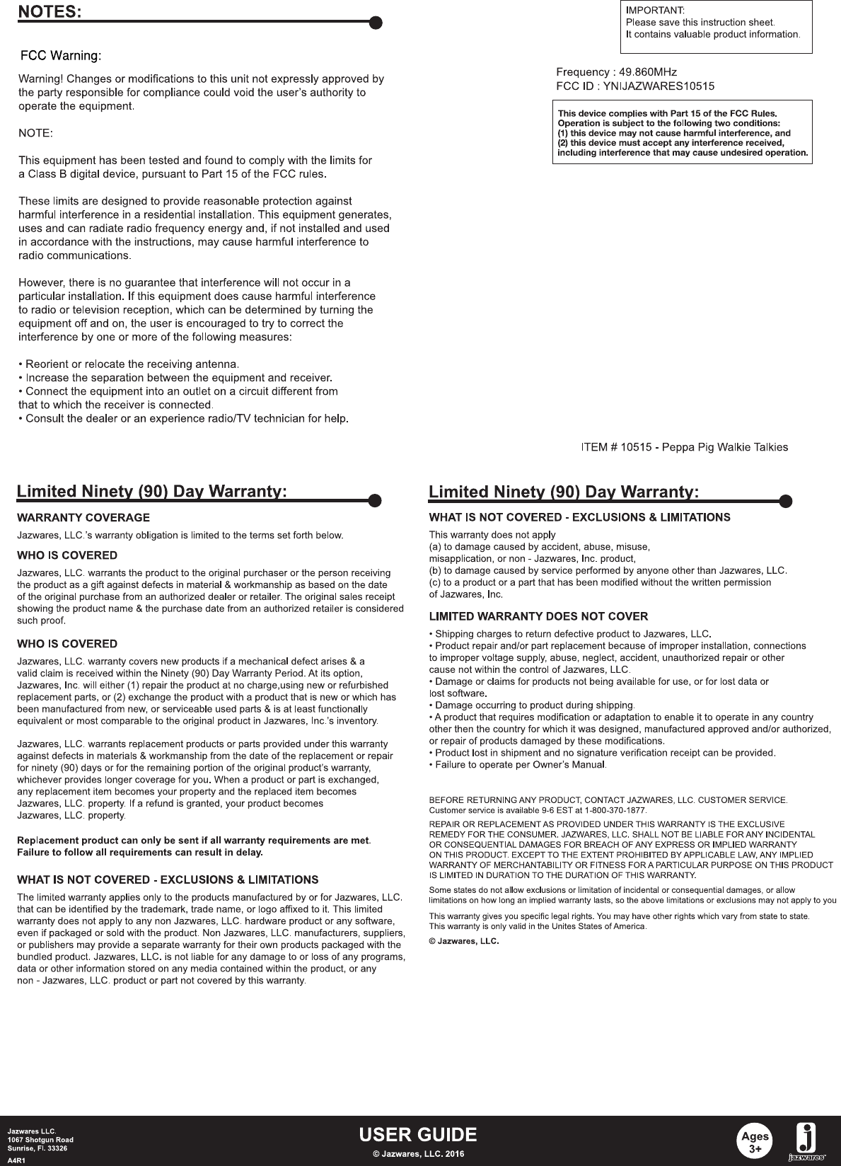 JAZWARES10515 User Manual HTML Version