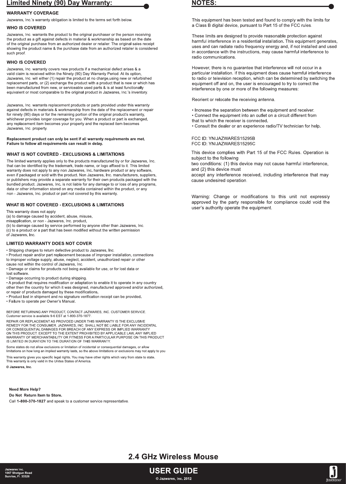 JAZWARES15295C User Manual HTML Version