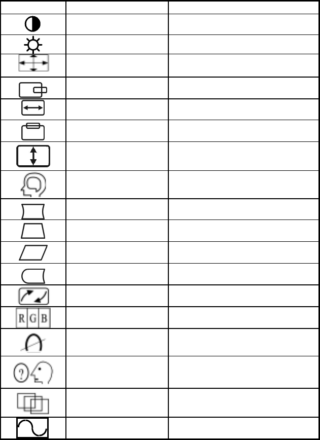 Zoom, H-phase, H-size, V-center, V-Size, Pincushion, Trapezoid,