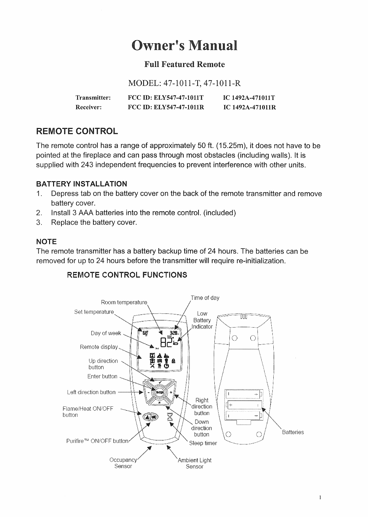 Jeckson Electric 547-47-1011-T 433MHz Full Featured Remote (433.92MHz Tx) User Manual