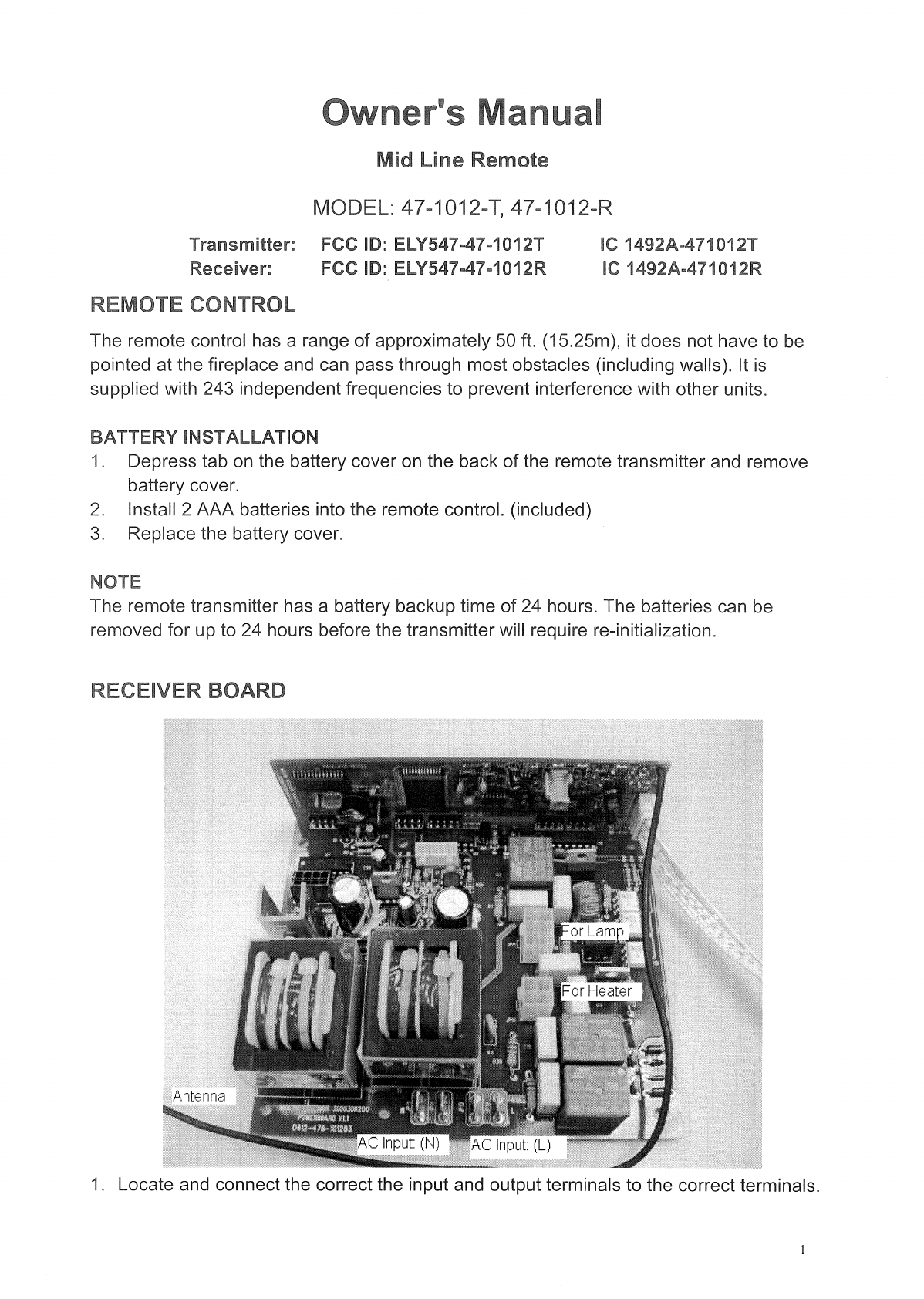 Jeckson Electric 547-47-1012-R 433MHz Mid Line Remote (433.92MHz Rx) User Manual