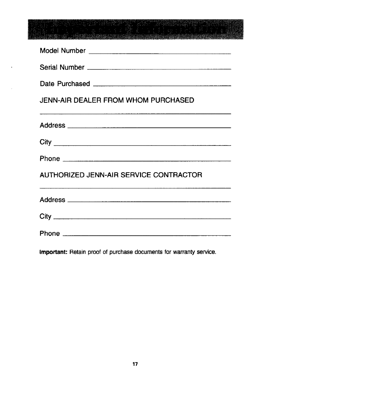 JENN-AIR DEALER FROM WHOM PURCHASED