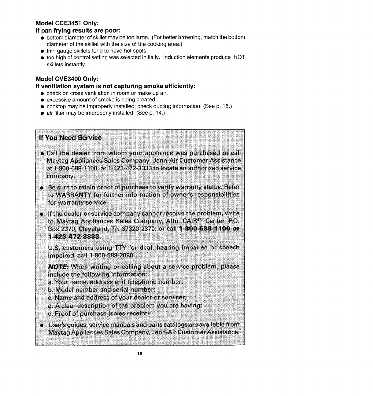 •cooktop may be improperly installed; check ducting information. (See p. 15.)