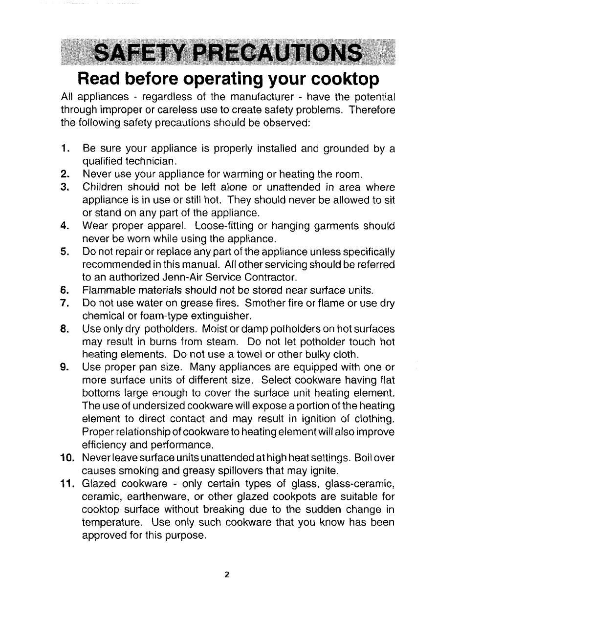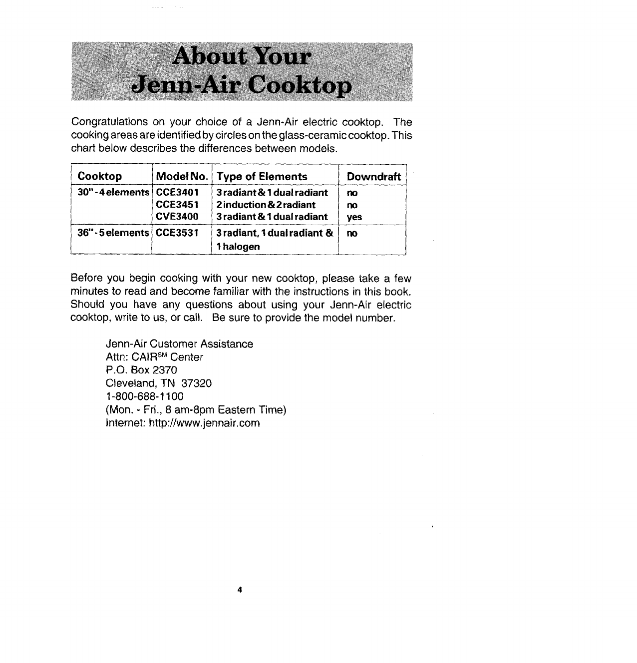 Congratulations on your choice of a Jenn-Air electric cooktop. The