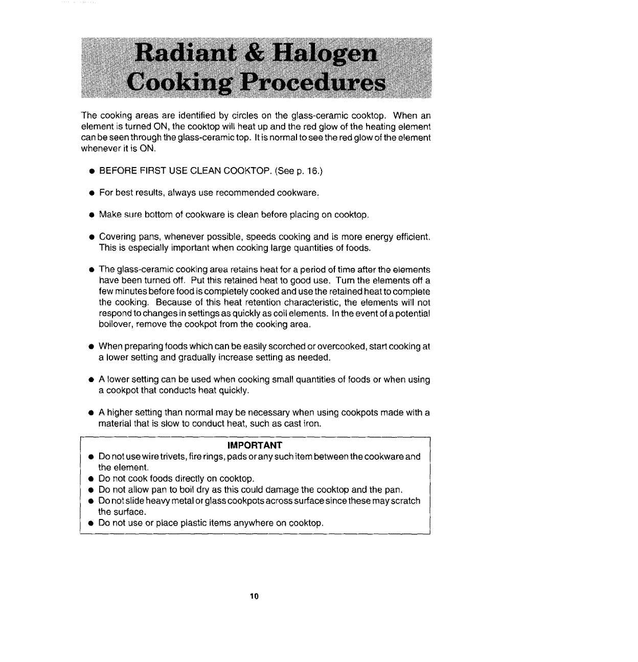 15. Do not cook on glass-ceramiccookingsurface if the cooktop is