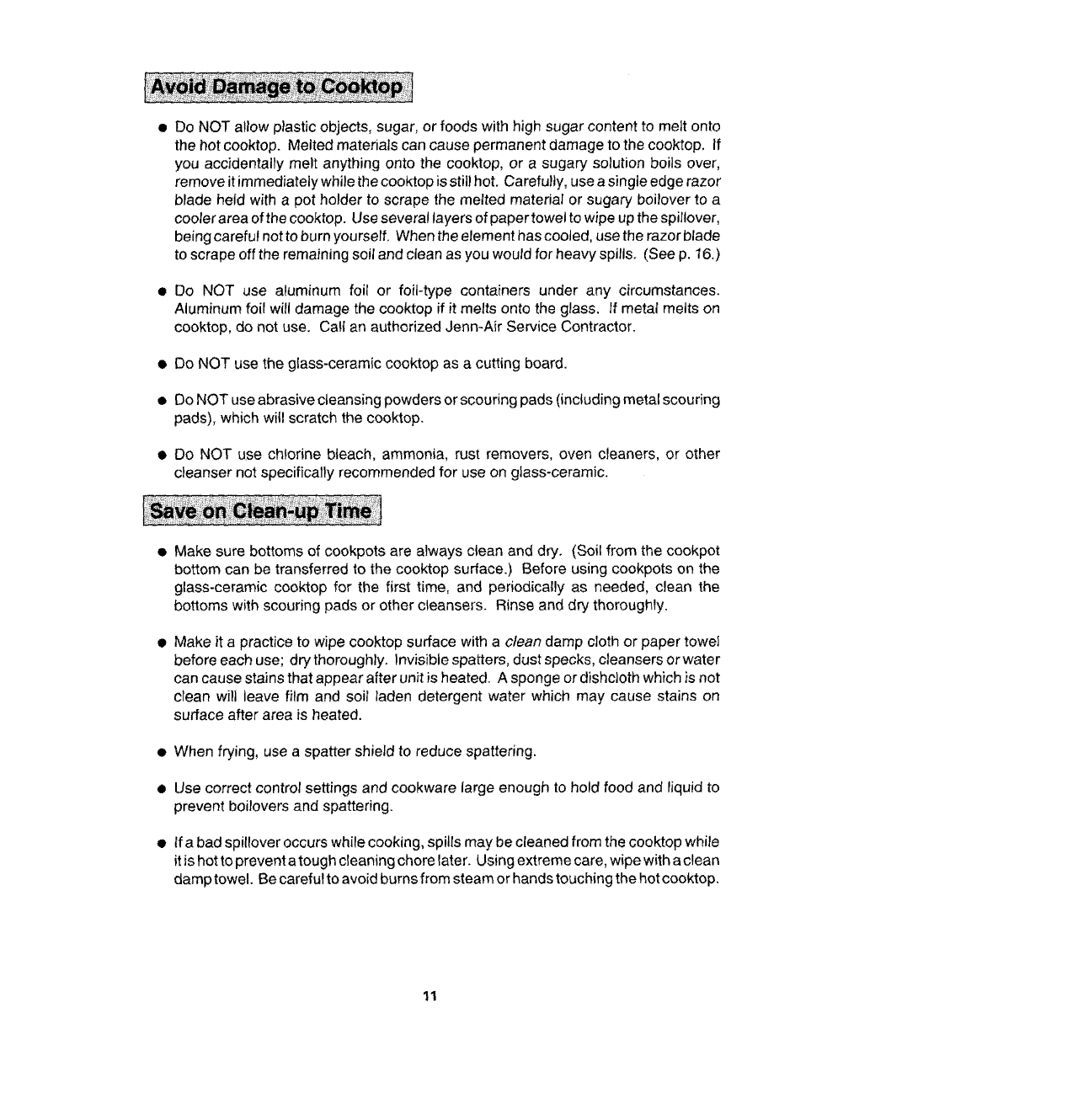 the cooktop can cause damage. See page tl for cleaning instructions.