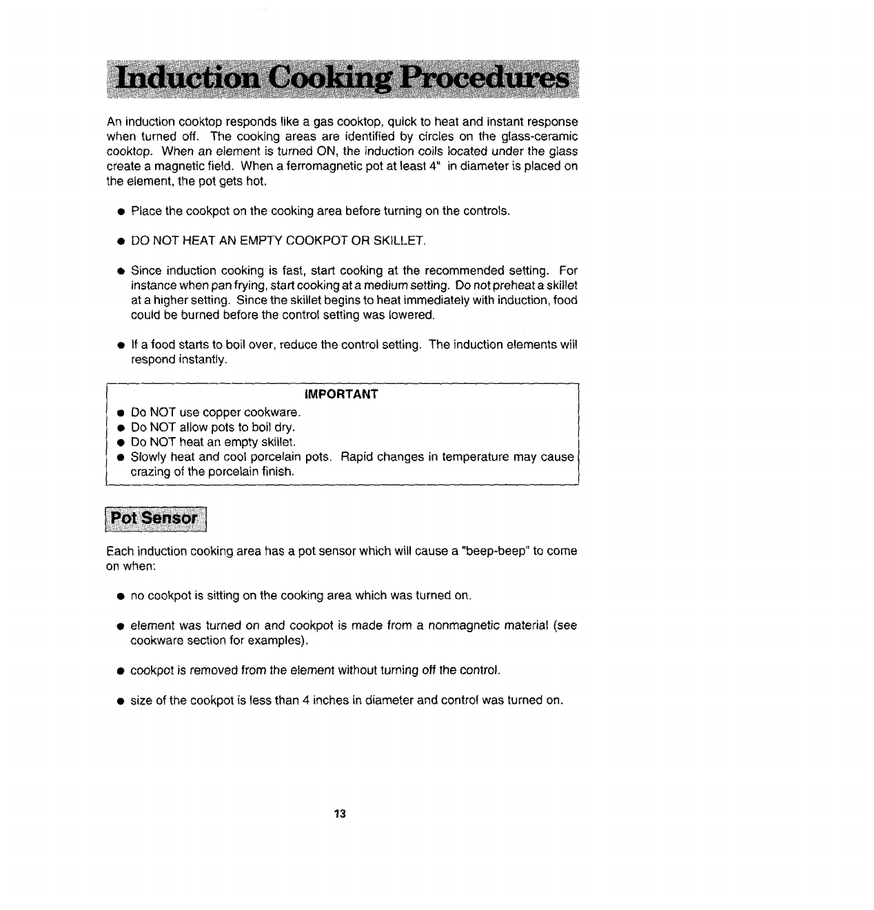 • the cookpot is made from a nonmagnetic material (see cookware section for