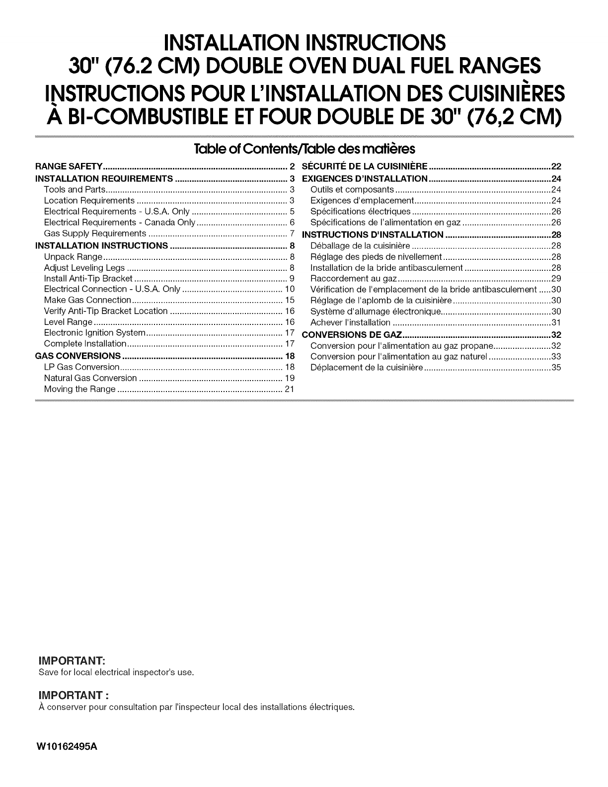 30" (76.2 CM) DOUBLEOVEN DUALFUELRANGES