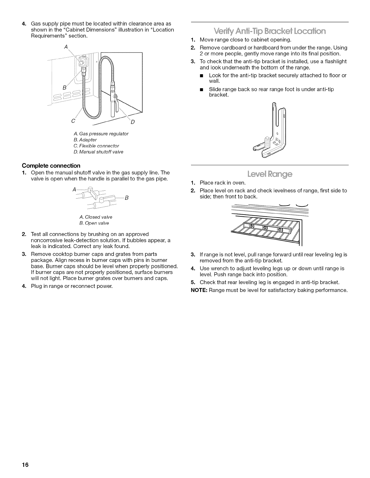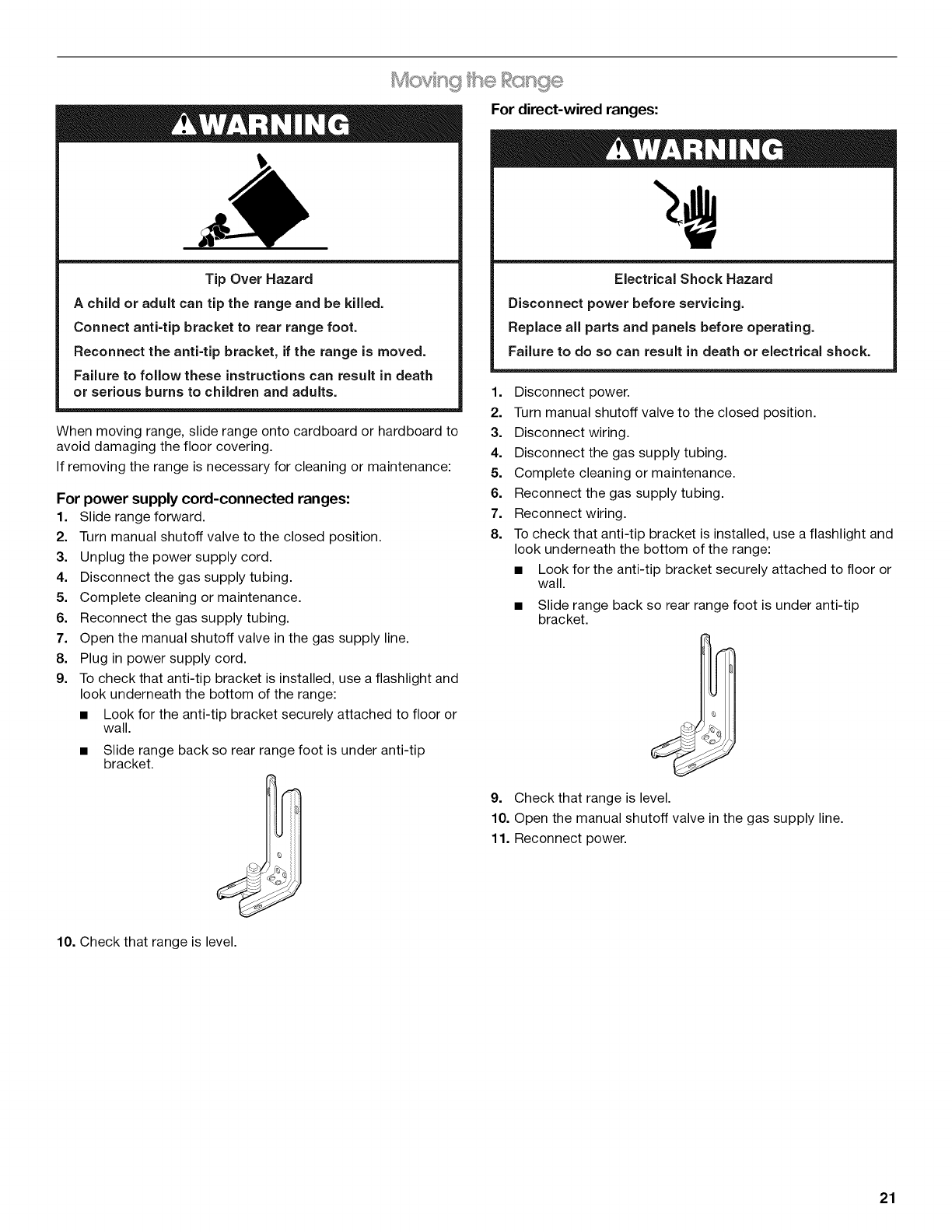 Reconnect the anti=tip bracket, if the range is moved.
