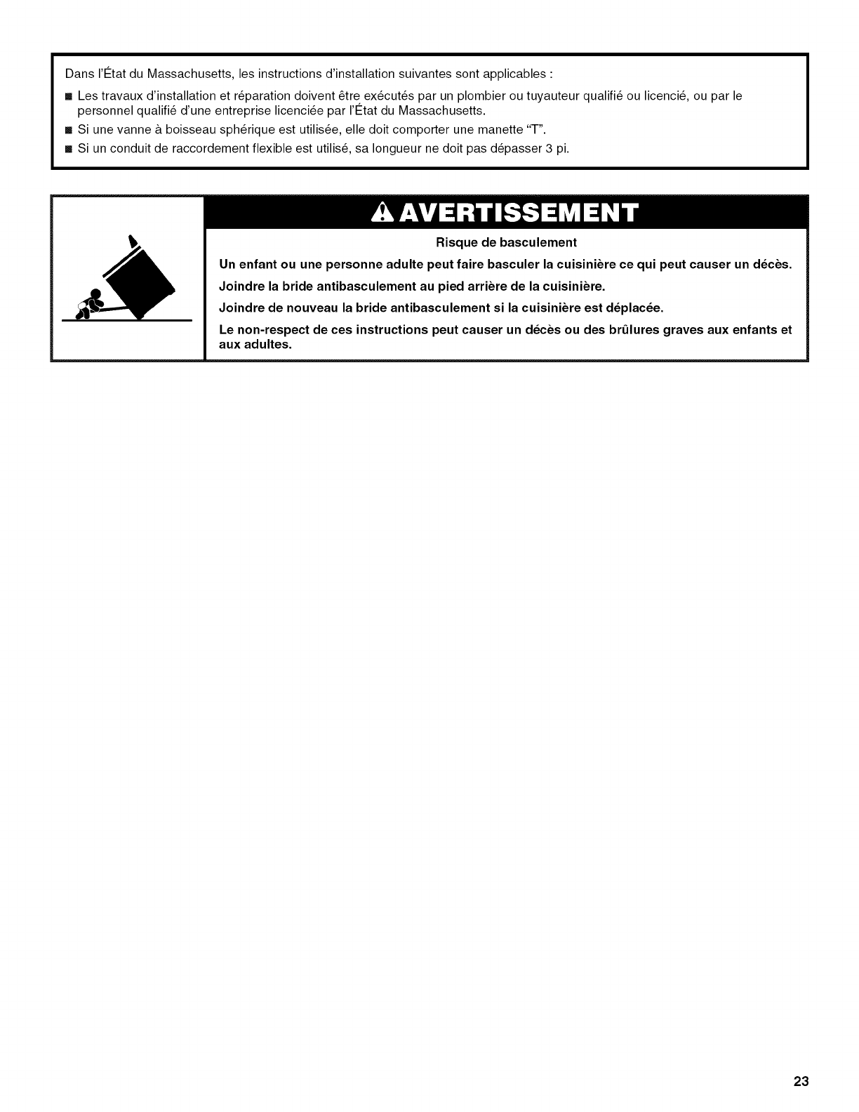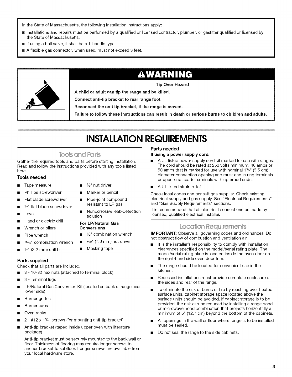 In the State of Massachusetts, the following installation instructions apply: