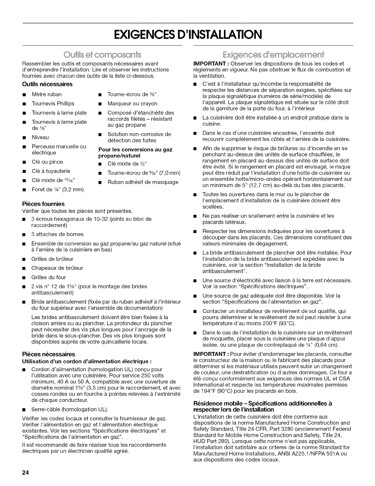 EXIGENCES D'INSTALLATION ................................................... 24