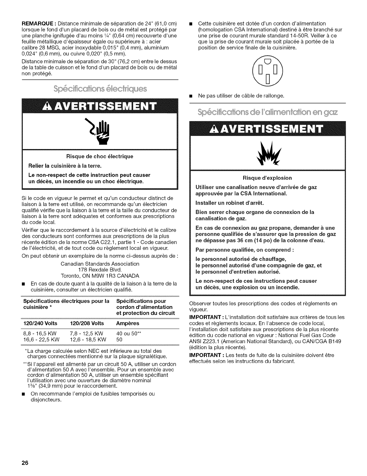 Specifications electriques .......................................................... 26