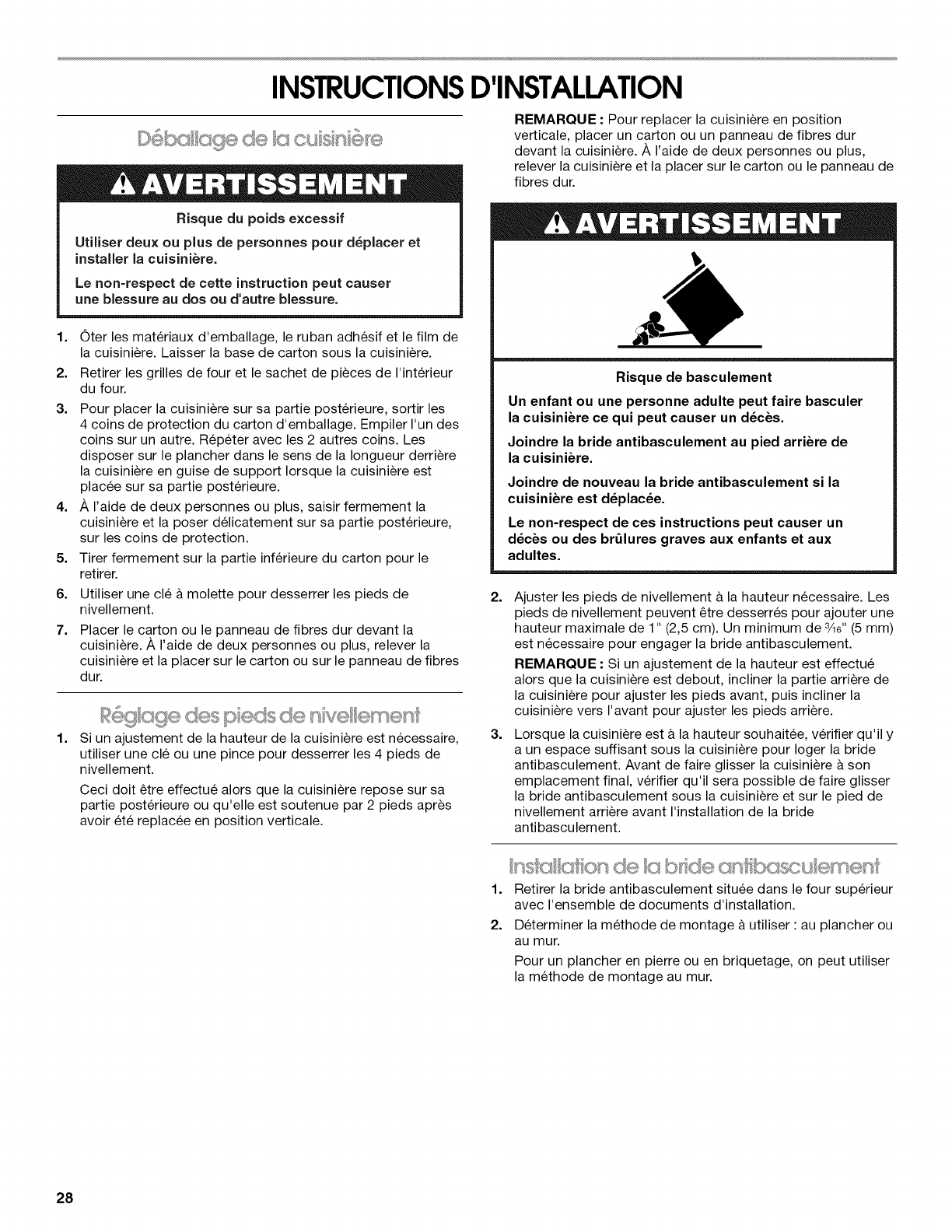 INSTRUCTIONS D'INSTALLATION ............................................ 28