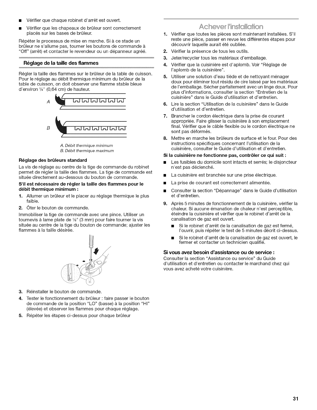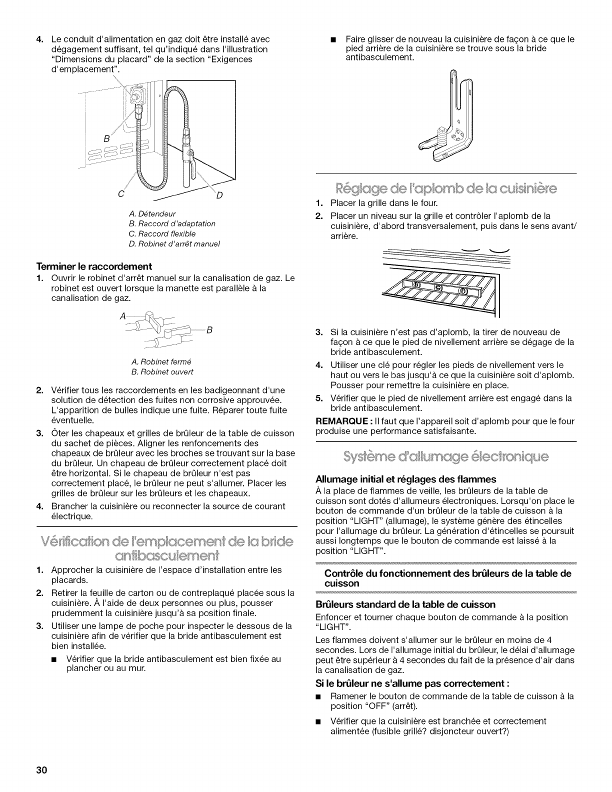Reglage de I'aplomb de la cuisiniere ......................................... 30