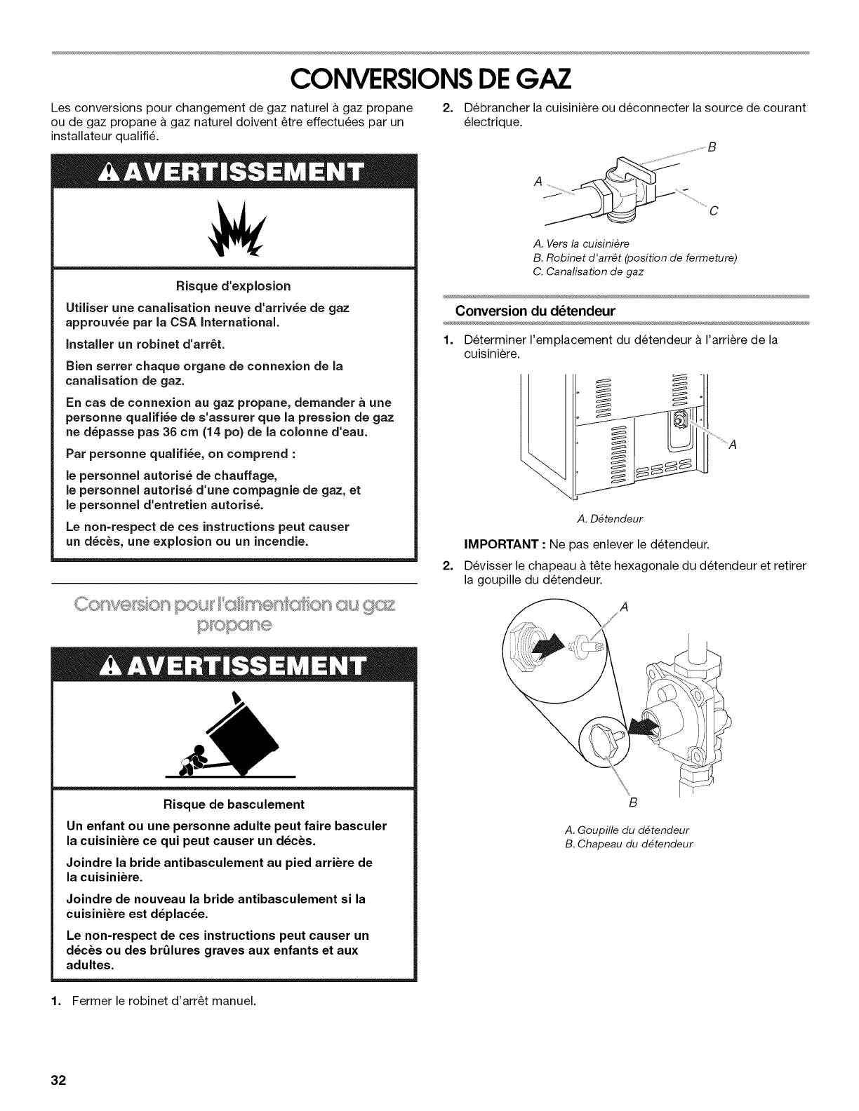 Conversion pour I'alimentation au gaz propane ........................ 32