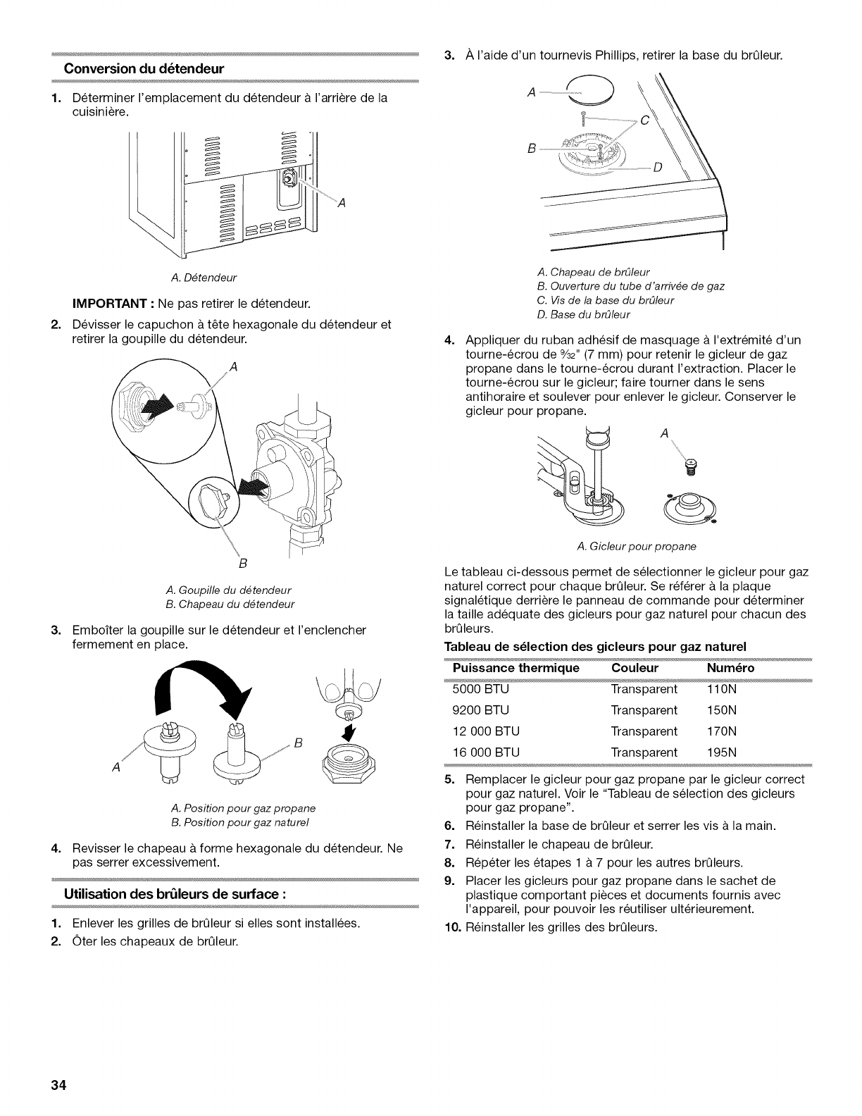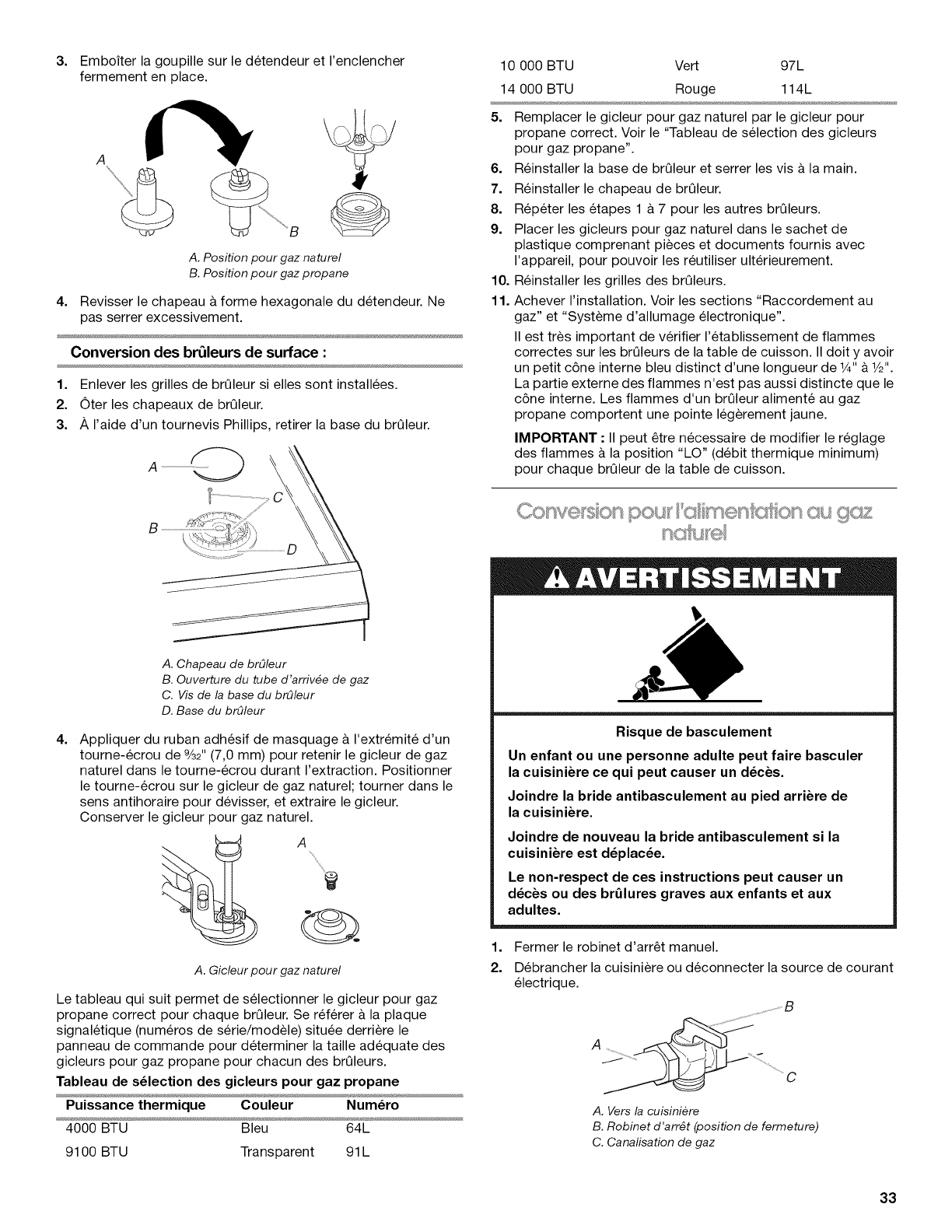 gicleurs pour gaz propane pour chacun des brQleurs.