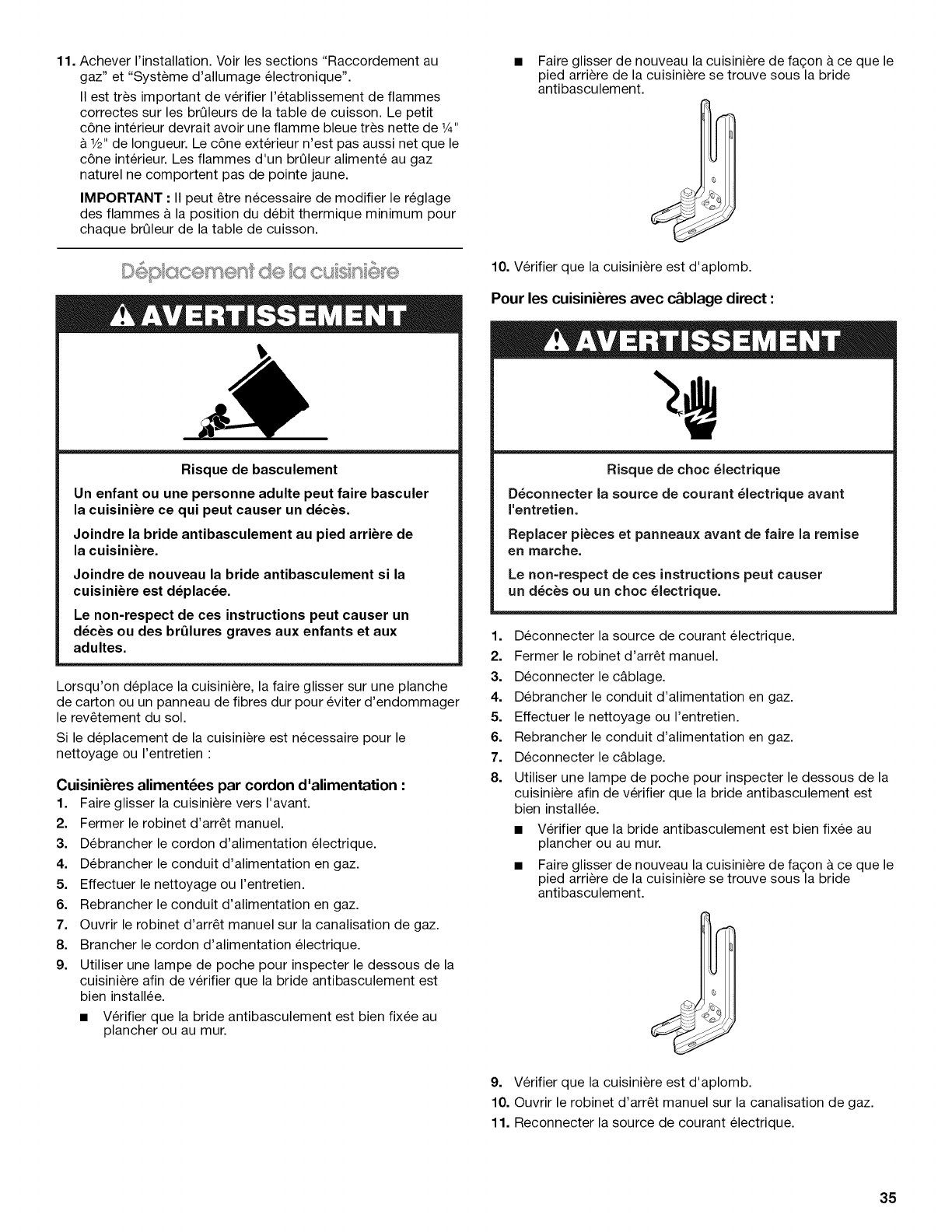 Deplacement de la cuisiniere ..................................................... 35