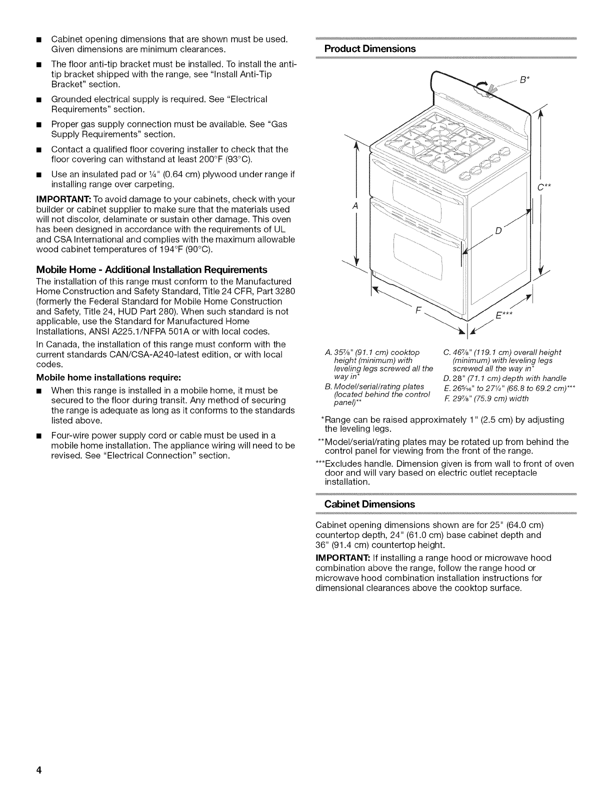 • A flexible gas connector, when used, must not exceed 3 feet.