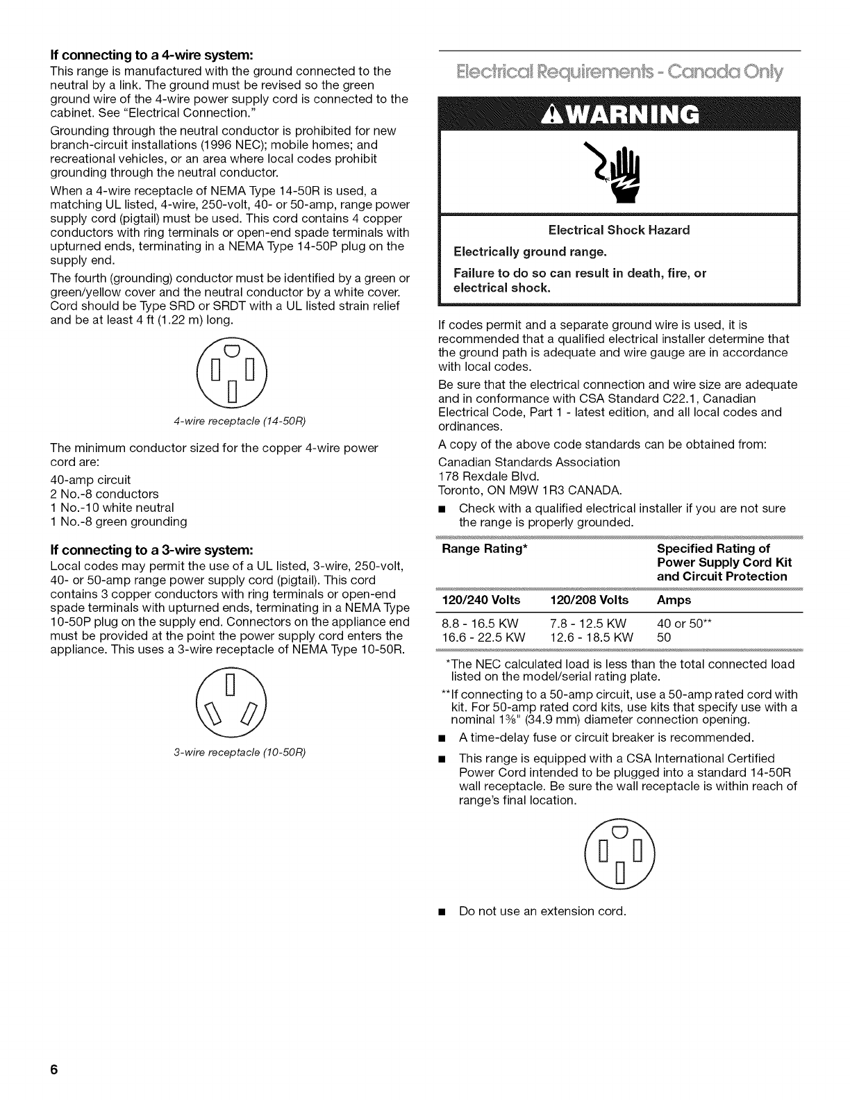 Electrical Requirements - Canada Only ...................................... 6