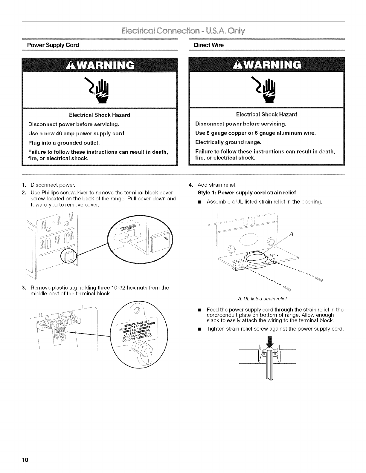 Electrical Connection - U.S.A. Only .......................................... 10
