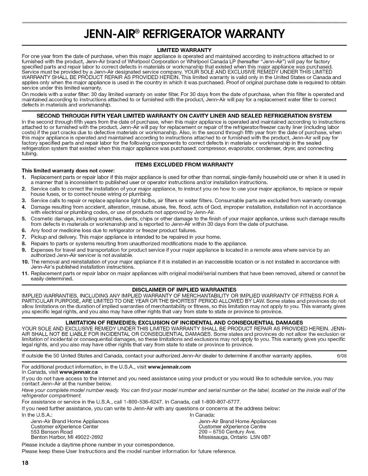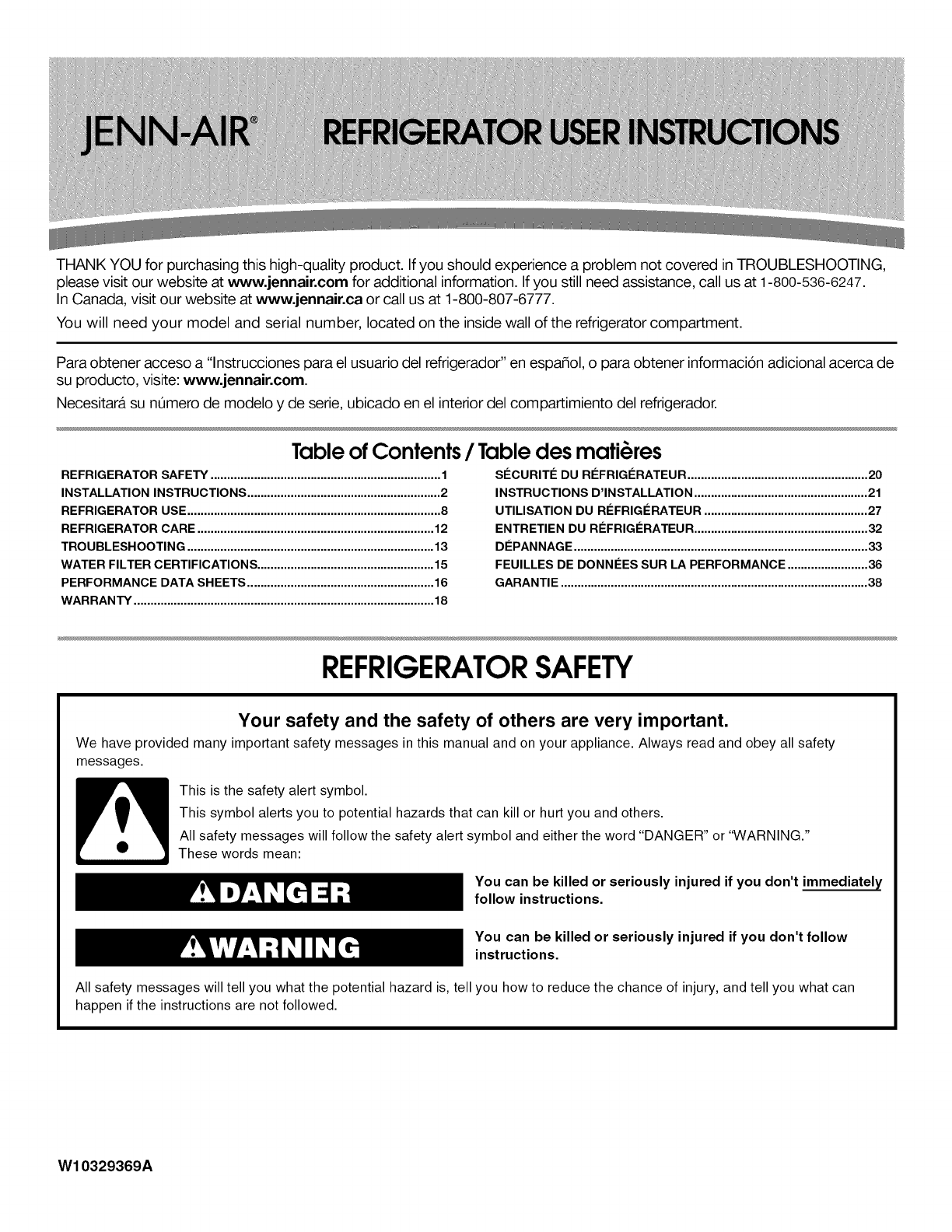 Jenn Air JFI2089AEP12 1102762L User Manual REFRIGERATOR Manuals And Guides