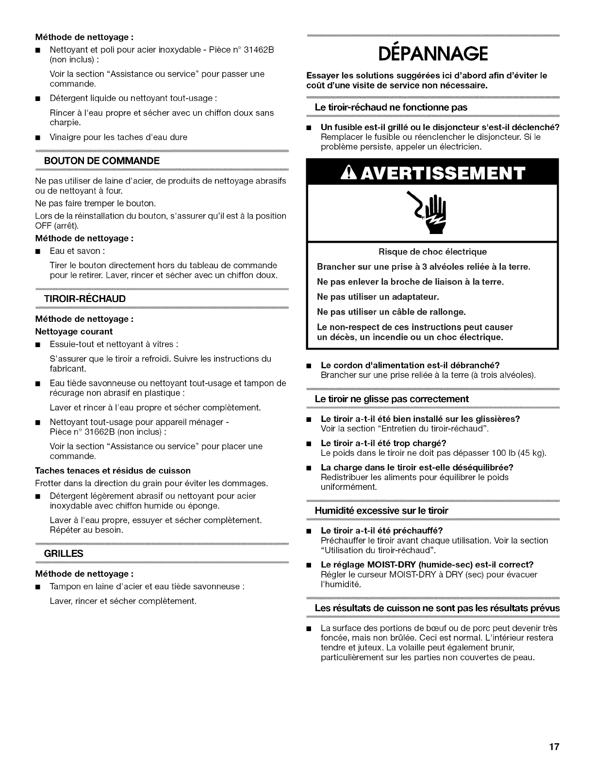 ENTRETIEN DU TIROIR-RI_CHAUD ........................................... 16