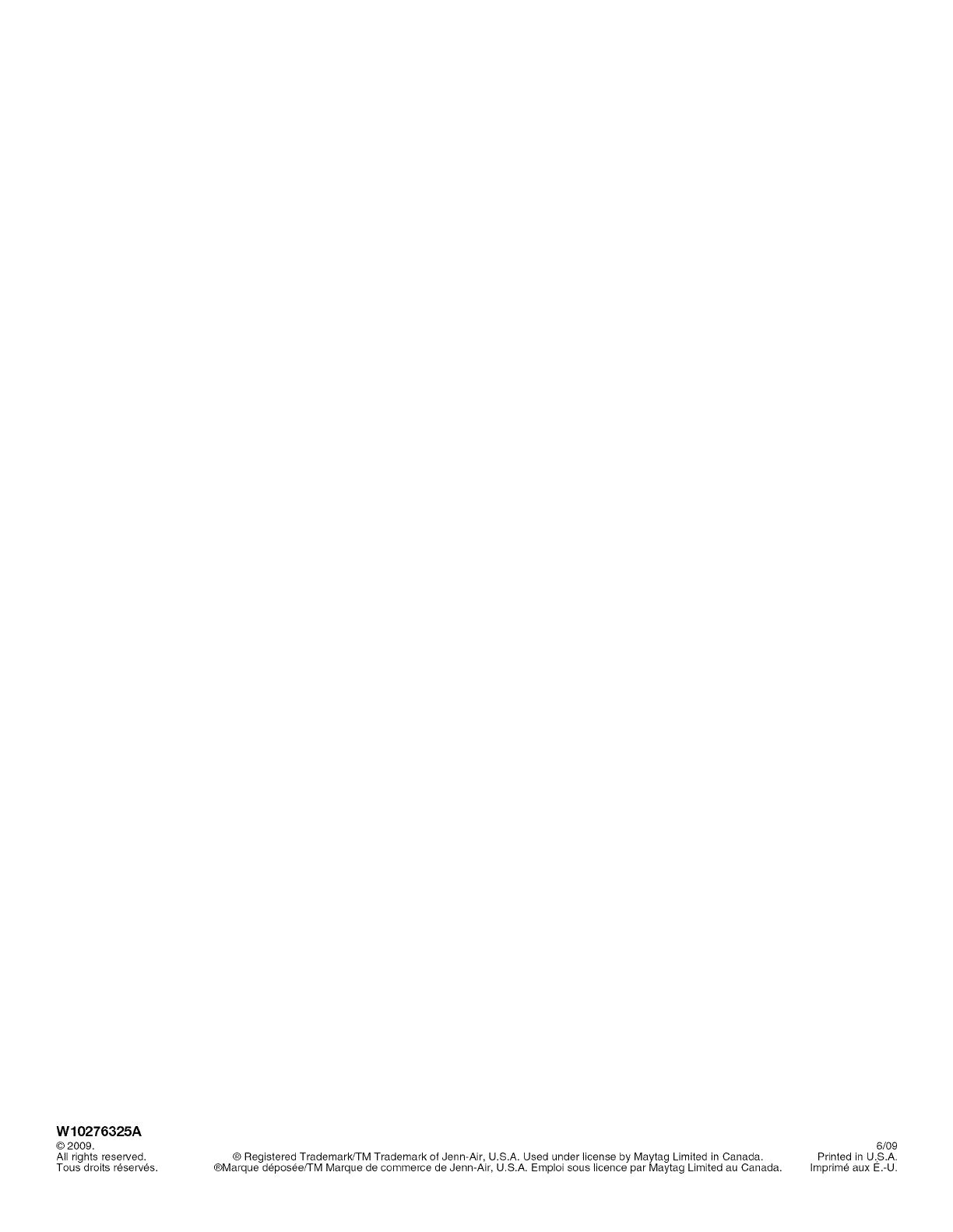 Tous droits reserves. ® Registered Trademark/TM Trademark of Jenn-Air, U.S.A. Used under license by Maytag Limited in Canada.