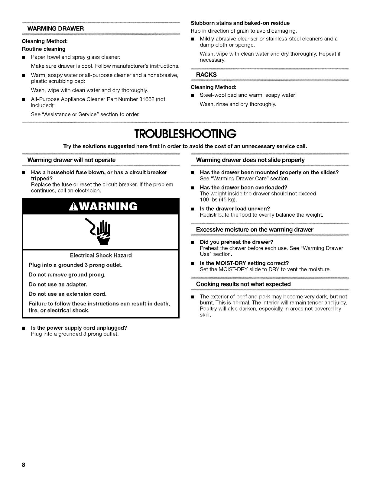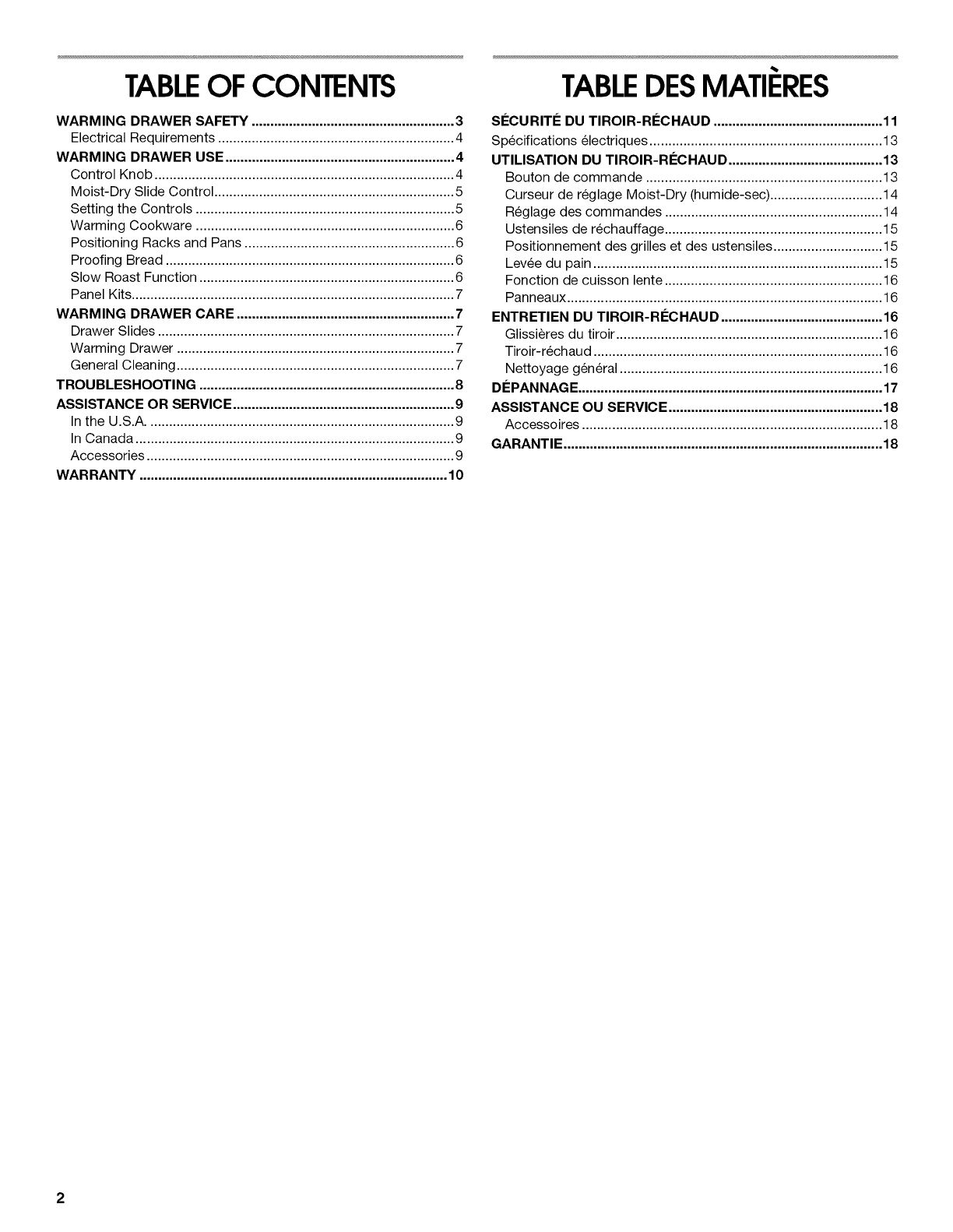 WARMING DRAWER CARE .......................................................... 7