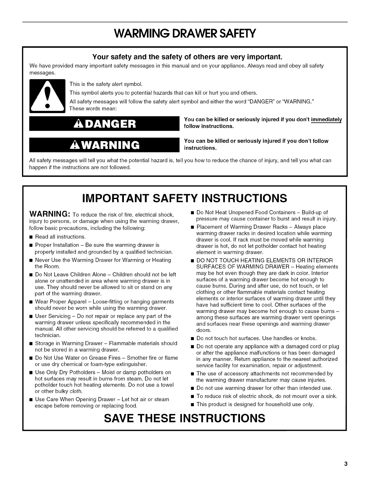 WARMING DRAWER SAFETY ...................................................... 3
