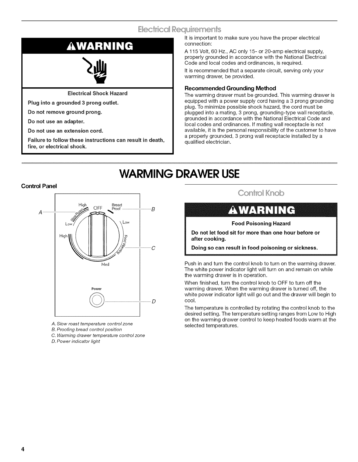WARMING DRAWER USE ............................................................. 4