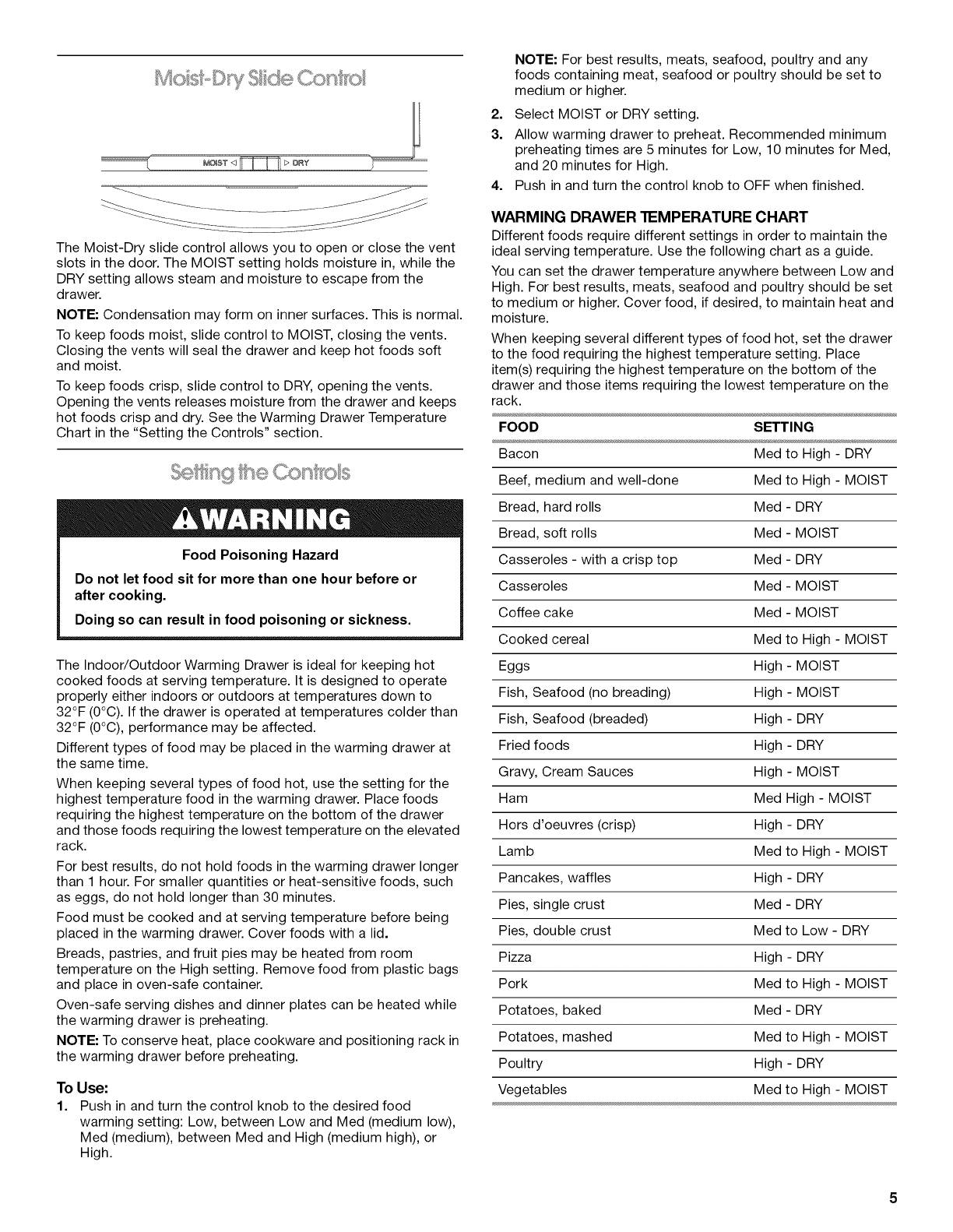 • Never Use the Warming Drawer for Warming or Heating