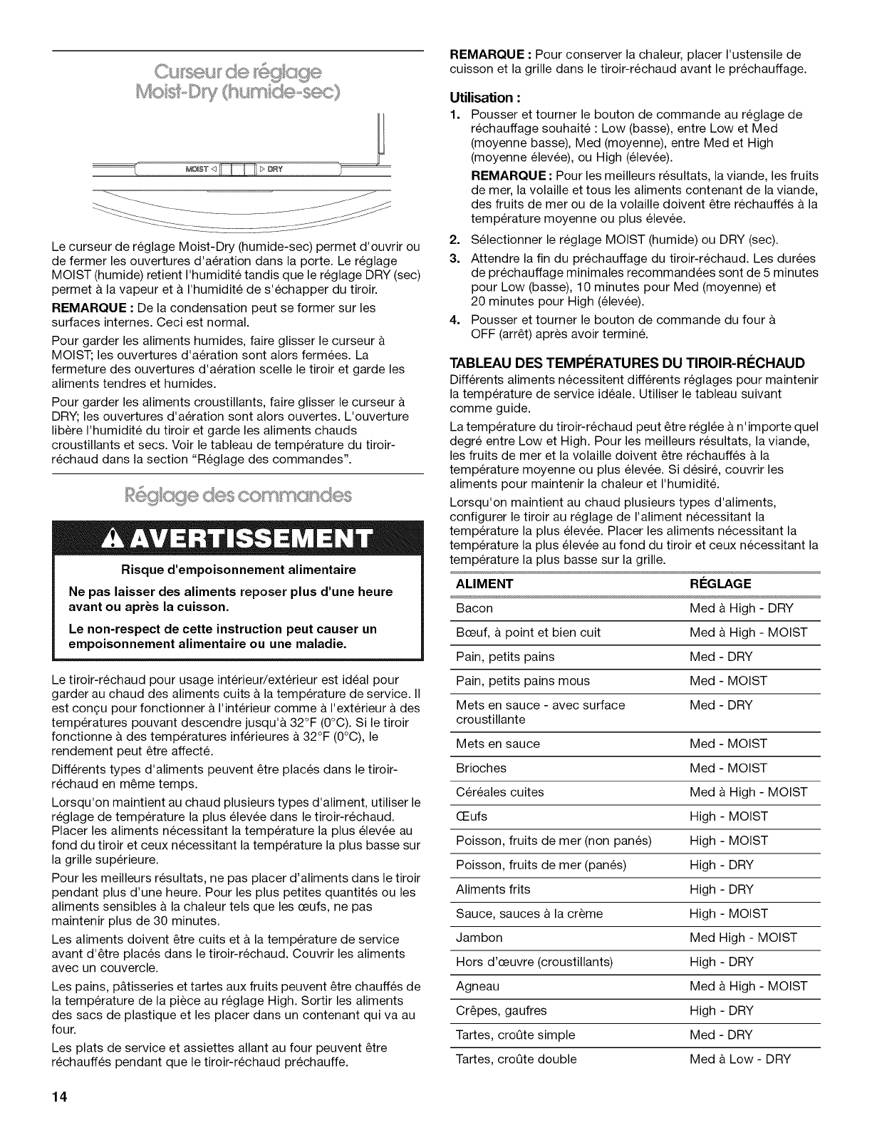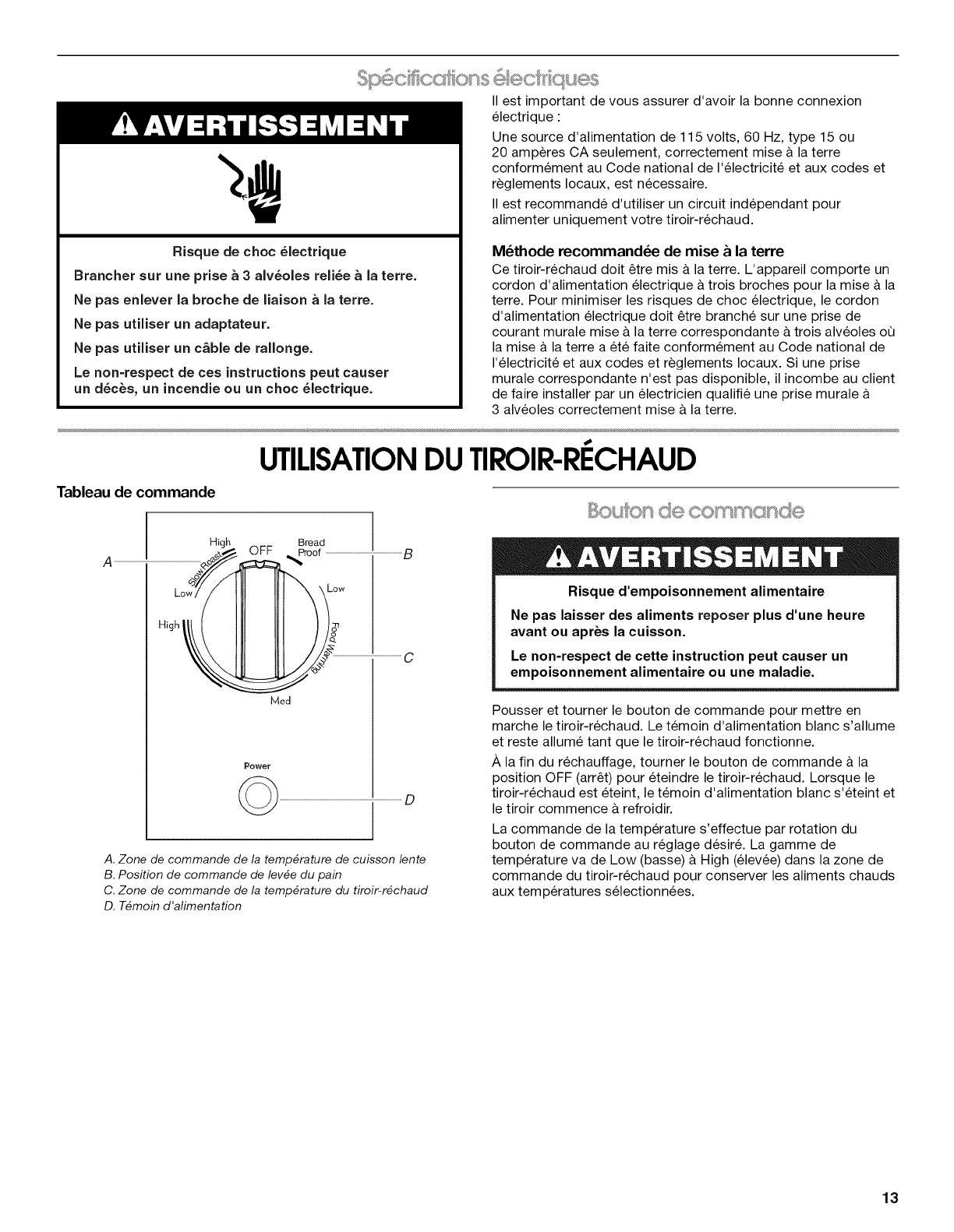 UTILISATION DU TIROIR-RI_CHAUD ......................................... 13