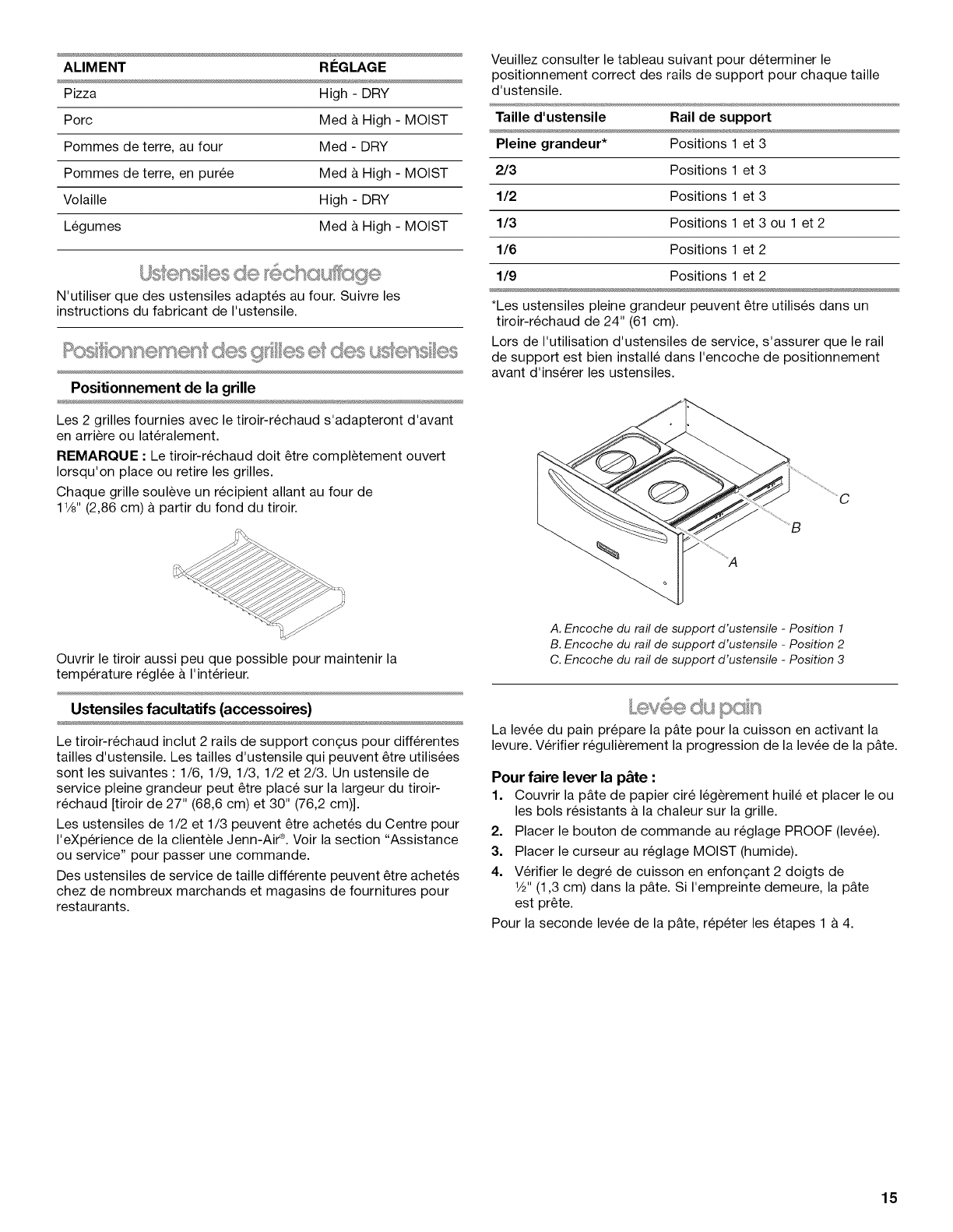 Positionnement des grilles et des ustensiles ............................. 15