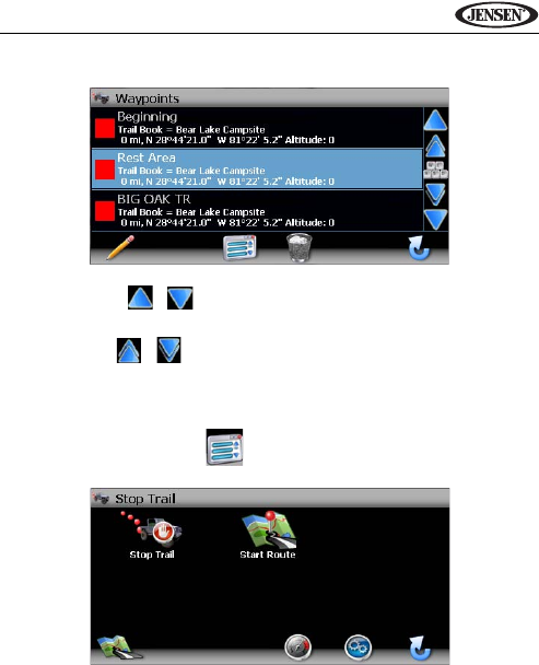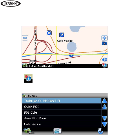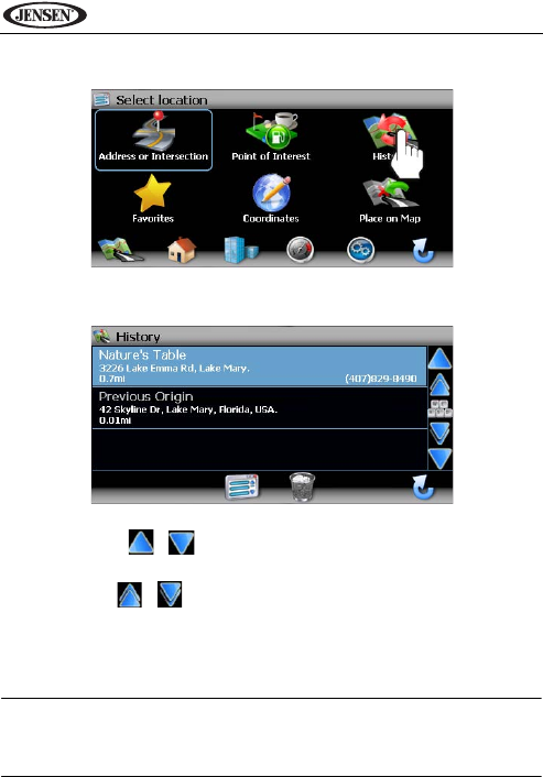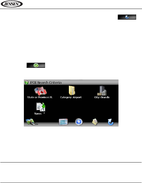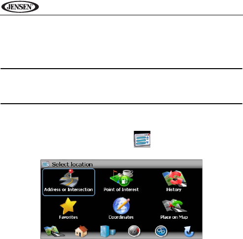 Press to reset the location of your vehicle. You will be returned to the “Select