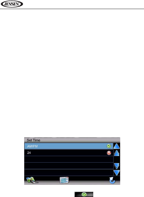 The “Set Time” screen allows you to choose between AM/PM or 24 hour