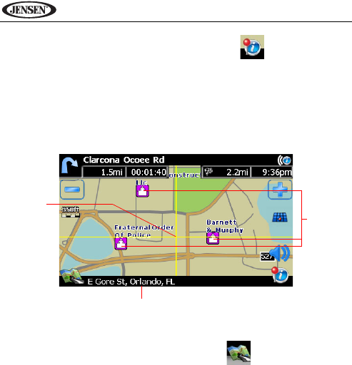•Heading Up: This mode will display the map with the vehicle direction