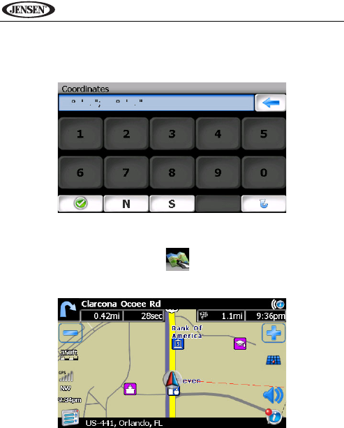 •North Up: This mode will display the map with North always pointing