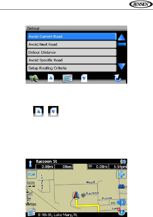 navigation while the green arrow representing the vehicle stays up and