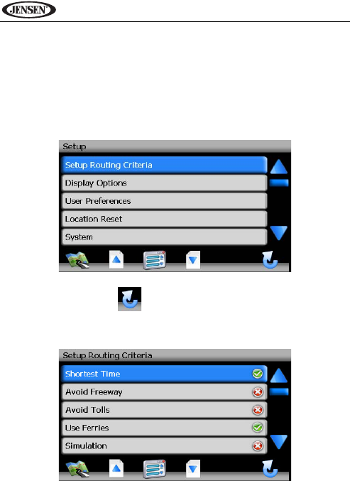 Setup Routing Criteria