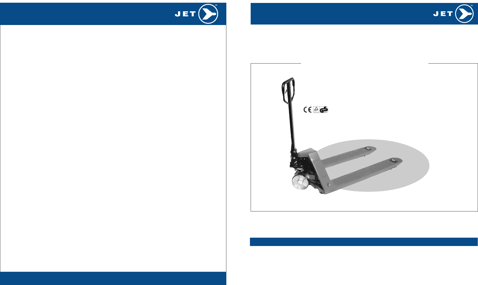 Thank you for purchasing a JET pallet truck. Your pallet truck is made of high quality steel and