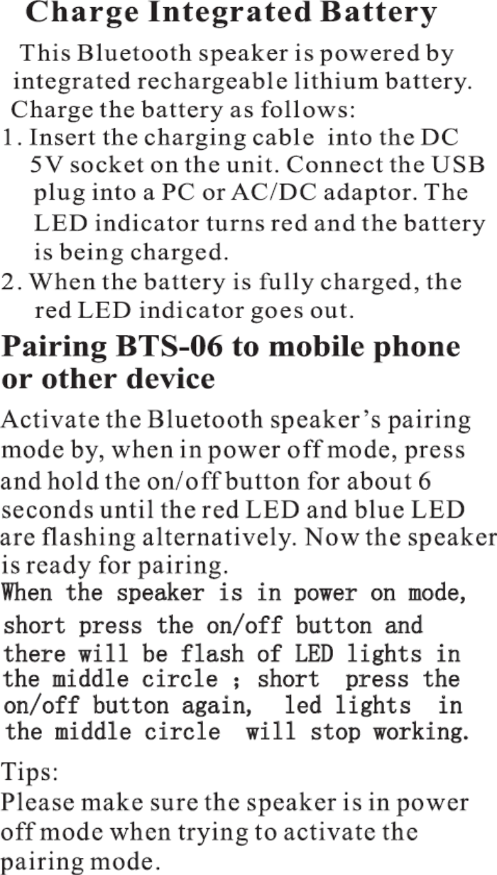 Jianyexing Technology BTS-06 Bluetooth Speaker User Manual