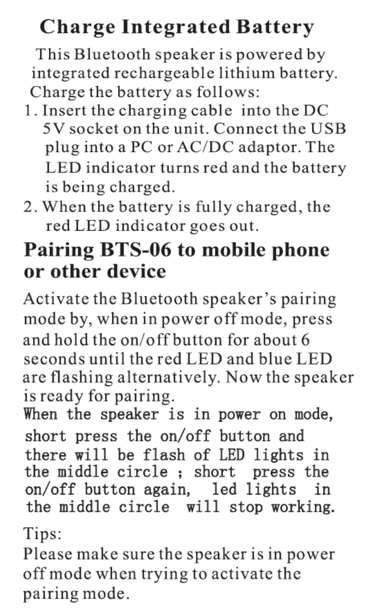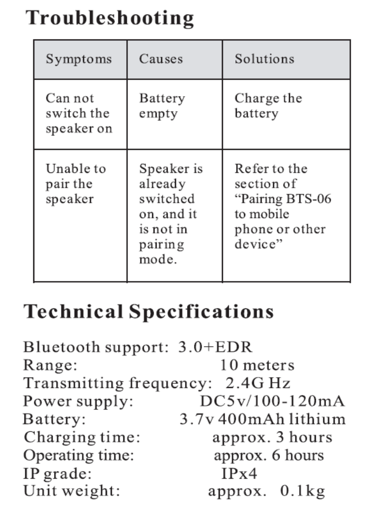 Jianyexing Technology BTS-06 Bluetooth Speaker User Manual
